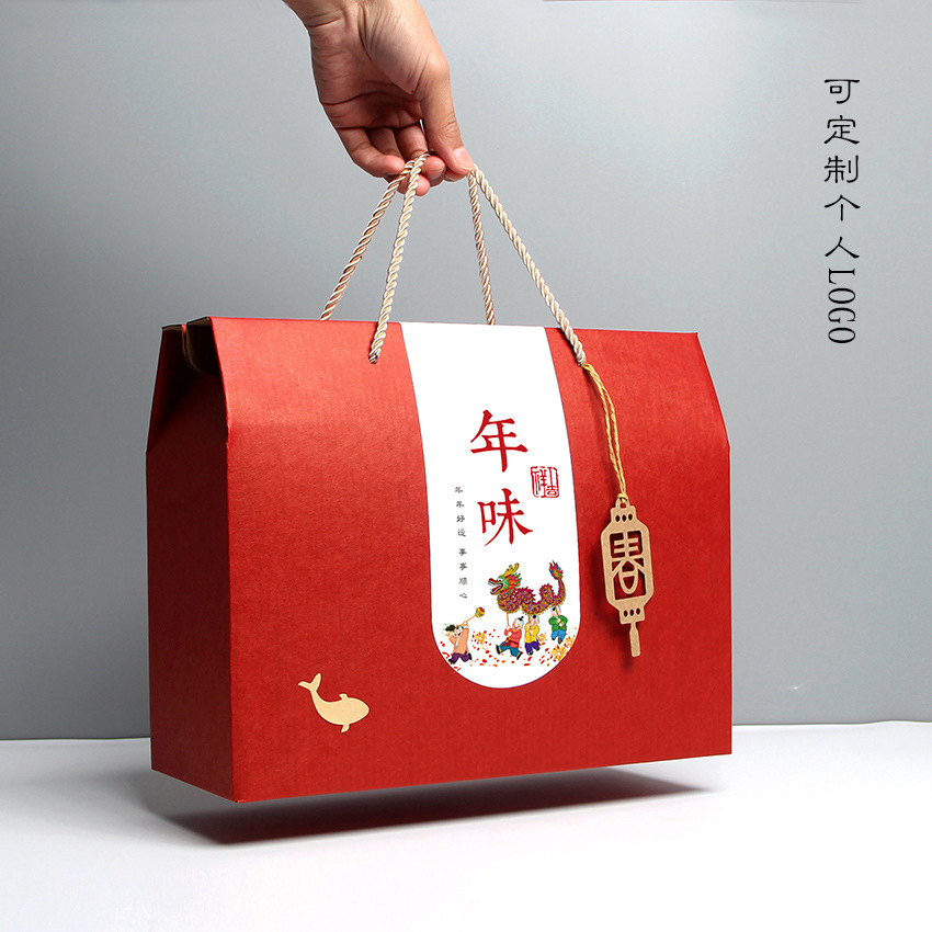 Подарочная коробка с логотипом к Новому году, красная универсальная ручная коробка из бумаги для упаковки, подходит для фруктов, готовых продуктов, специализированных товаров и сухих продуктов.