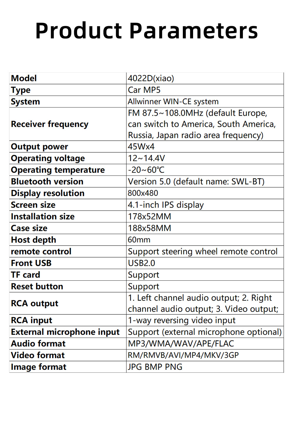 4022D автомобиль MP5 радио Bluetooth Реверсивный красочный свет формула управления без потерь Музыкальный автомобиль MP3 карта вставки машина