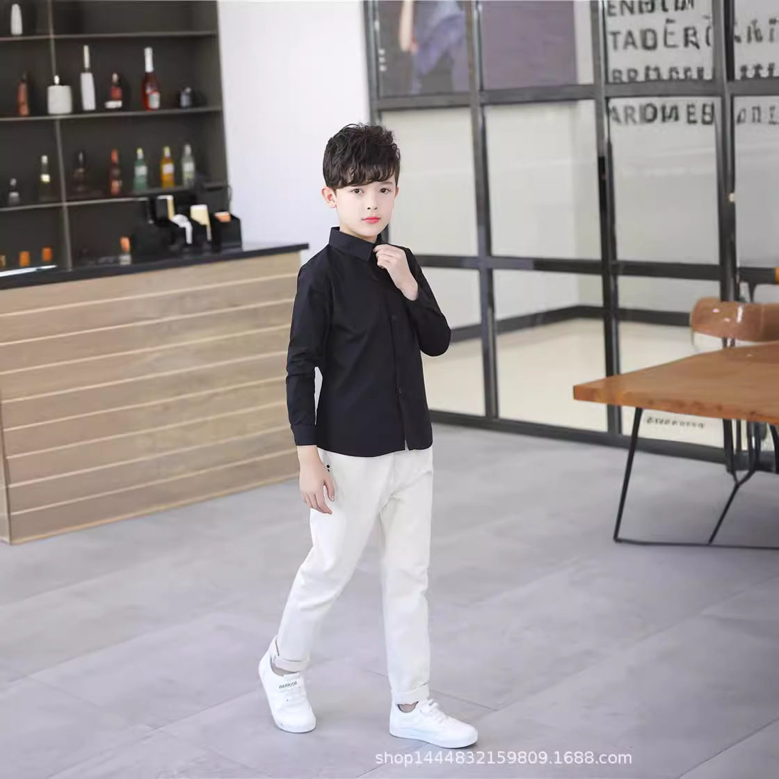 Детская забавная черно-белая однотонная рубашка для мальчиков и девочек в стиле хип-хоп, механический танец, рубашка с длинными рукавами