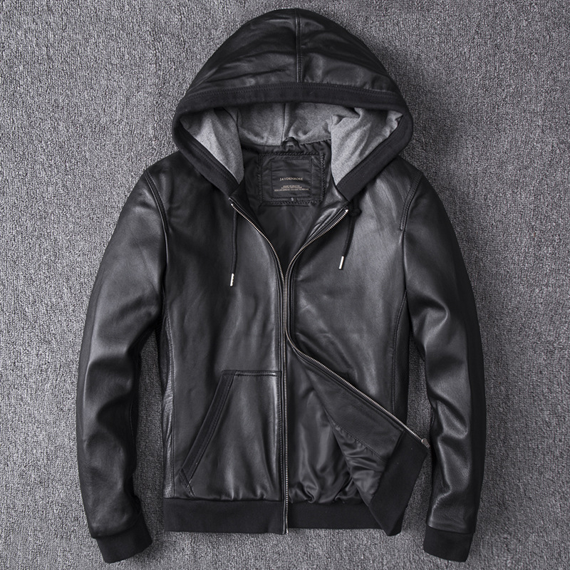 Куртка из овчины с капюшоном, куртка из натуральной кожи, мужская короткая куртка с капюшоном, весенне-осенний внесезонный тренд для спорта и отдыха