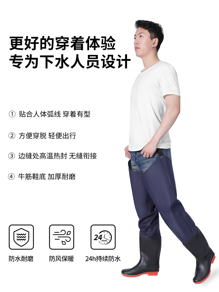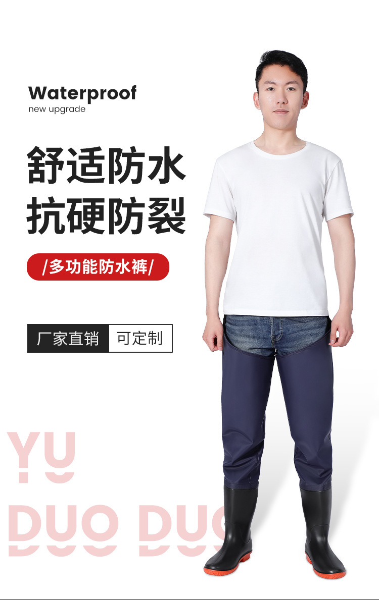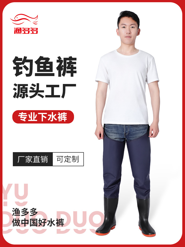 Прямые поставки с завода: утолщенные износостойкие синие брюки для рыбалки с разрезом на поясе, полуперчатые брюки для рыбалки, дождевые брюки, сапоги-дождевики, цельные.