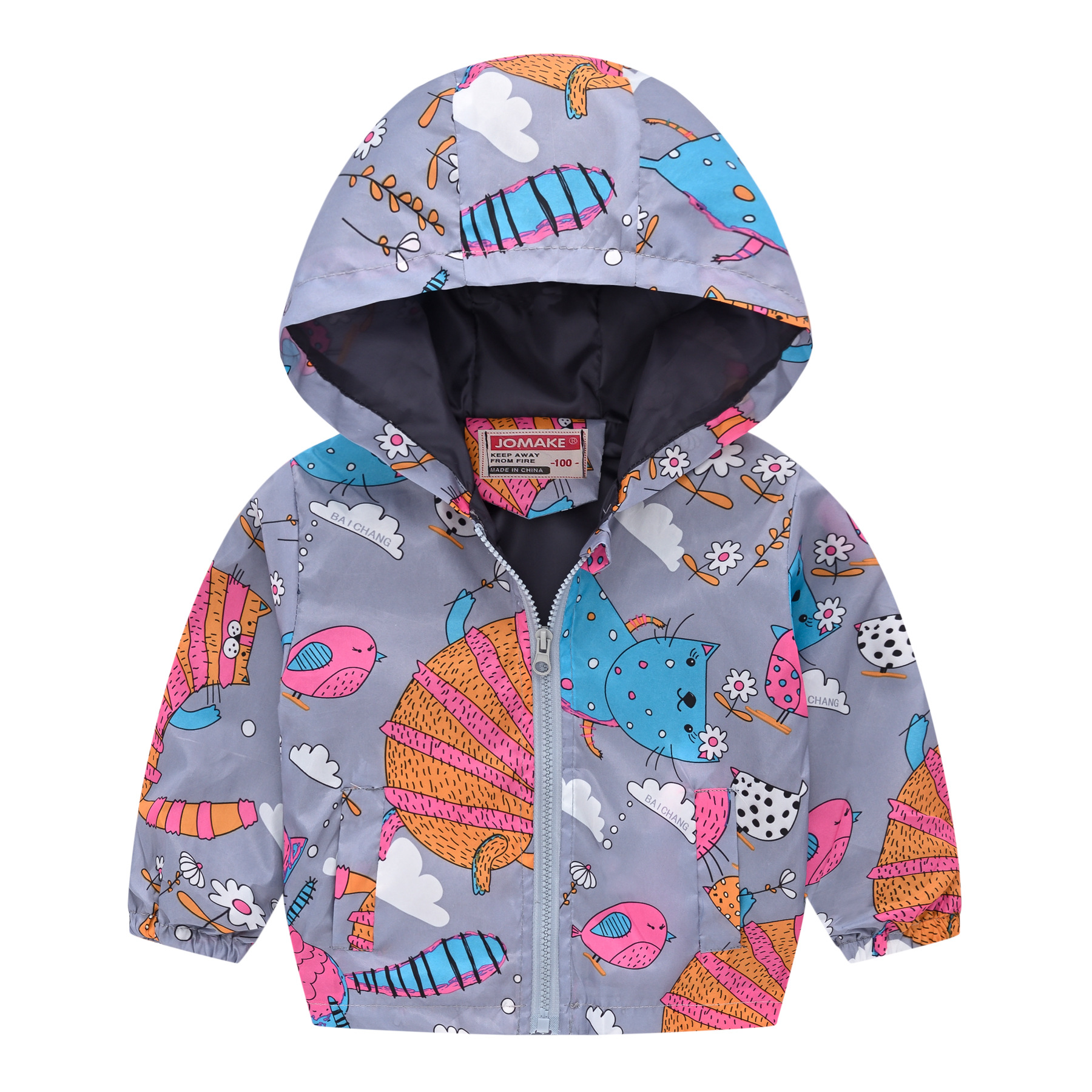 Детская одежда для внешней торговли Европейская и американская весенняя и осенняя модная куртка с капюшоном и принтом, рубашка на молнии, Детская куртка с принтом