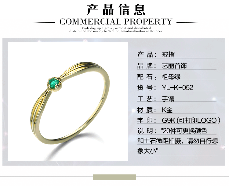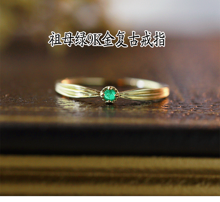 Yili ювелирные изделия оптом 9K золото простой ретро Джокер натуральный Изумрудный камень кольцо Женщины