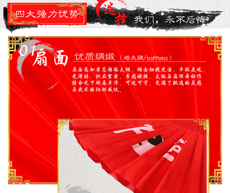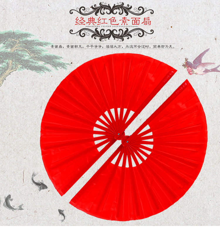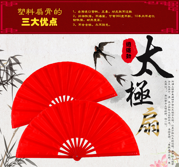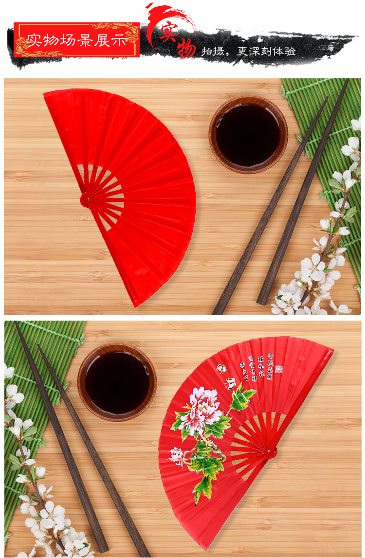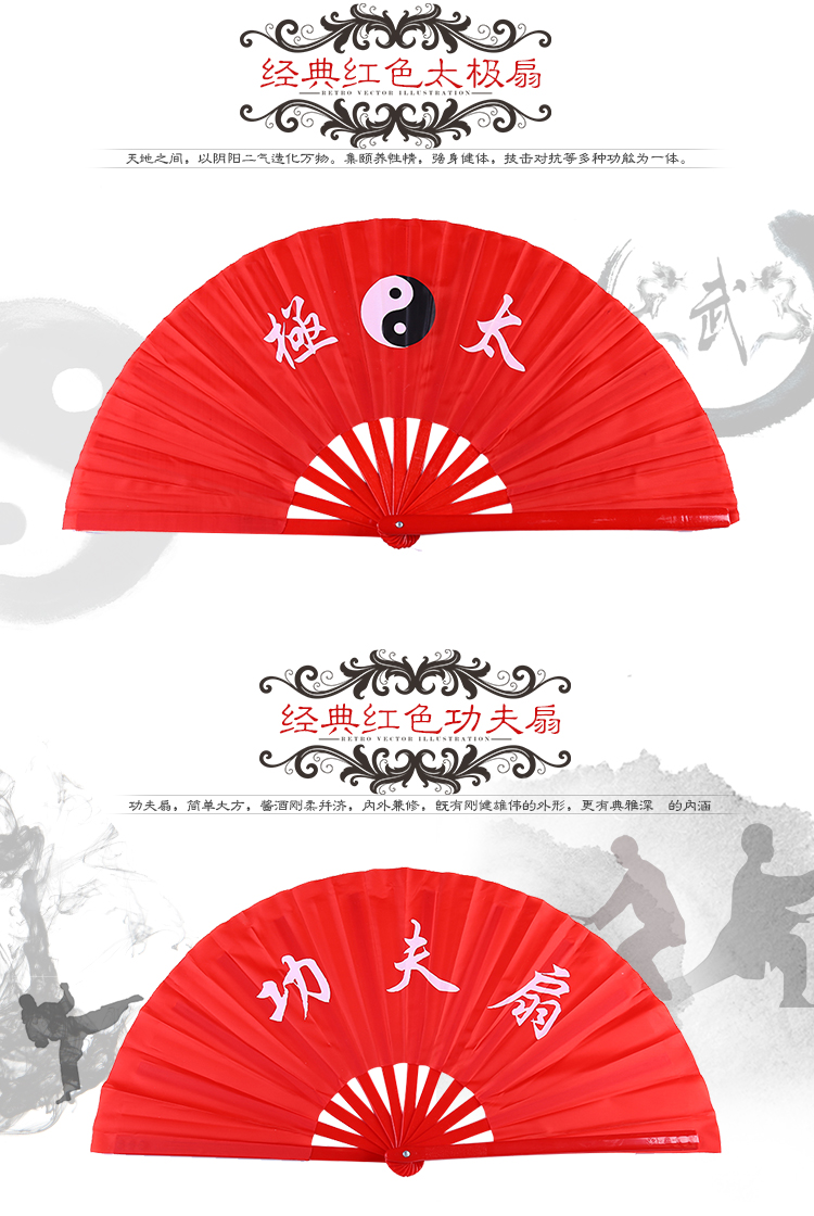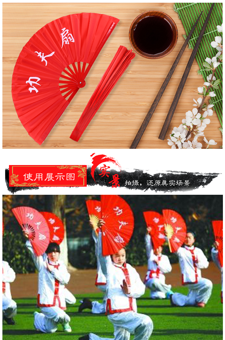 Тай Чи вентилятор кунг-фу вентилятор Красный вентилятор завод Оптовая продажа одной ногой Пластиковые бамбуковые кости двусторонний вентилятор Танцевальный вентилятор