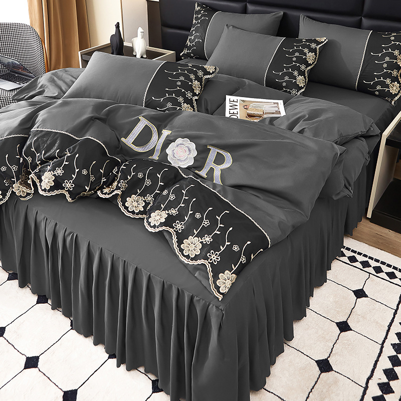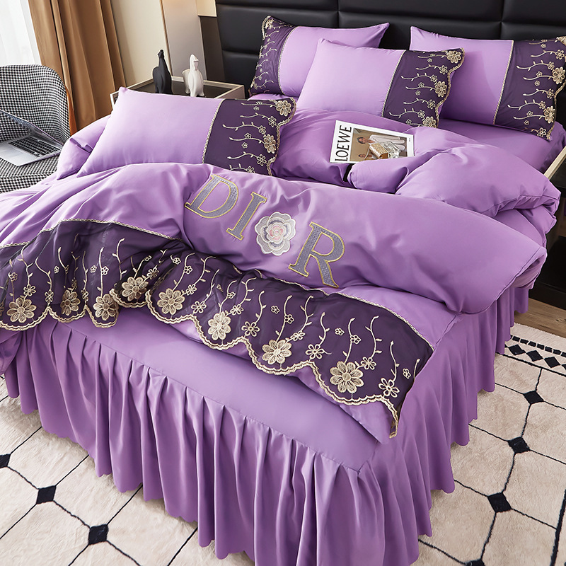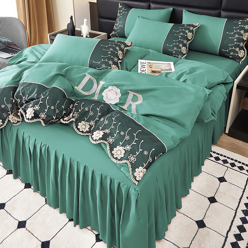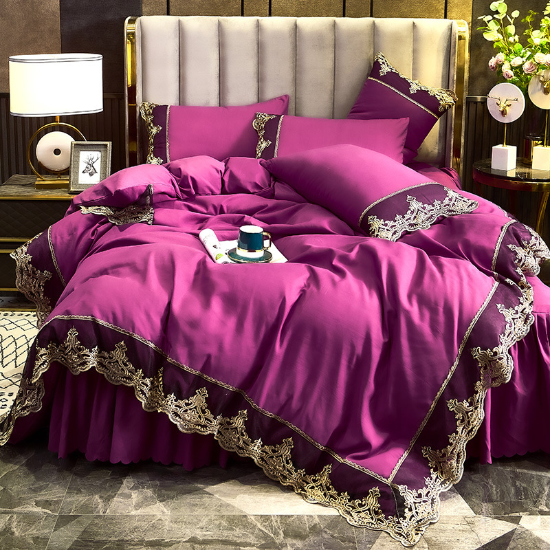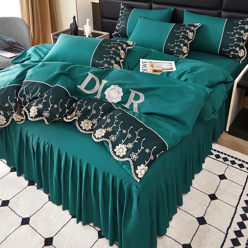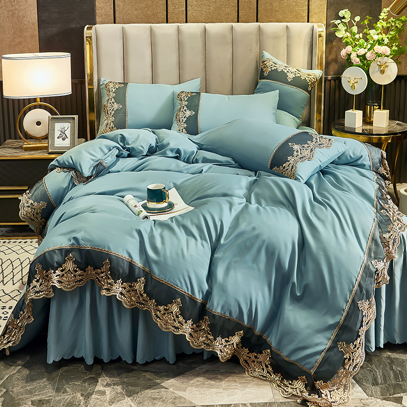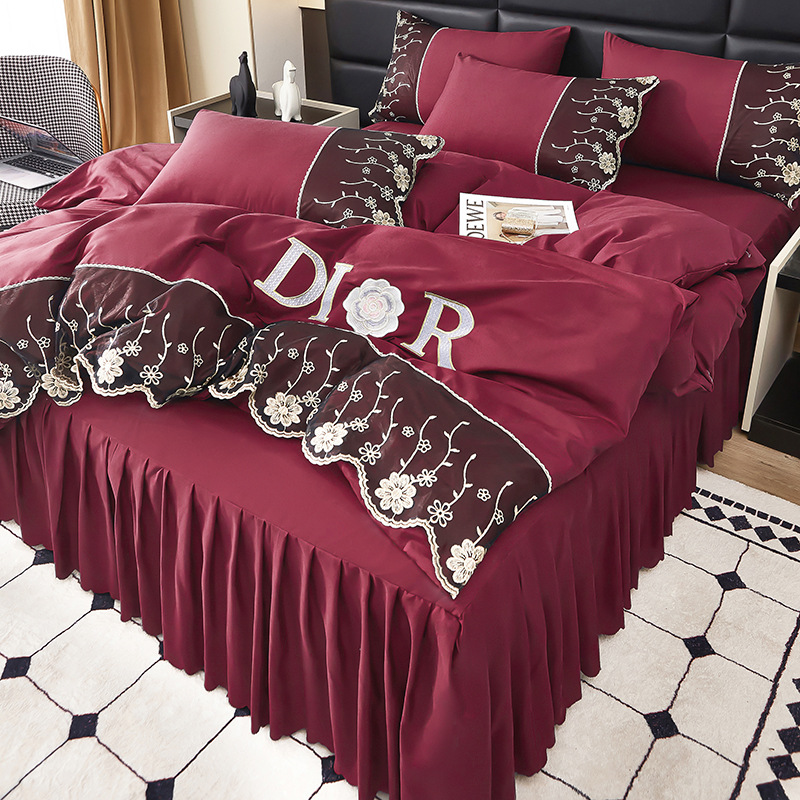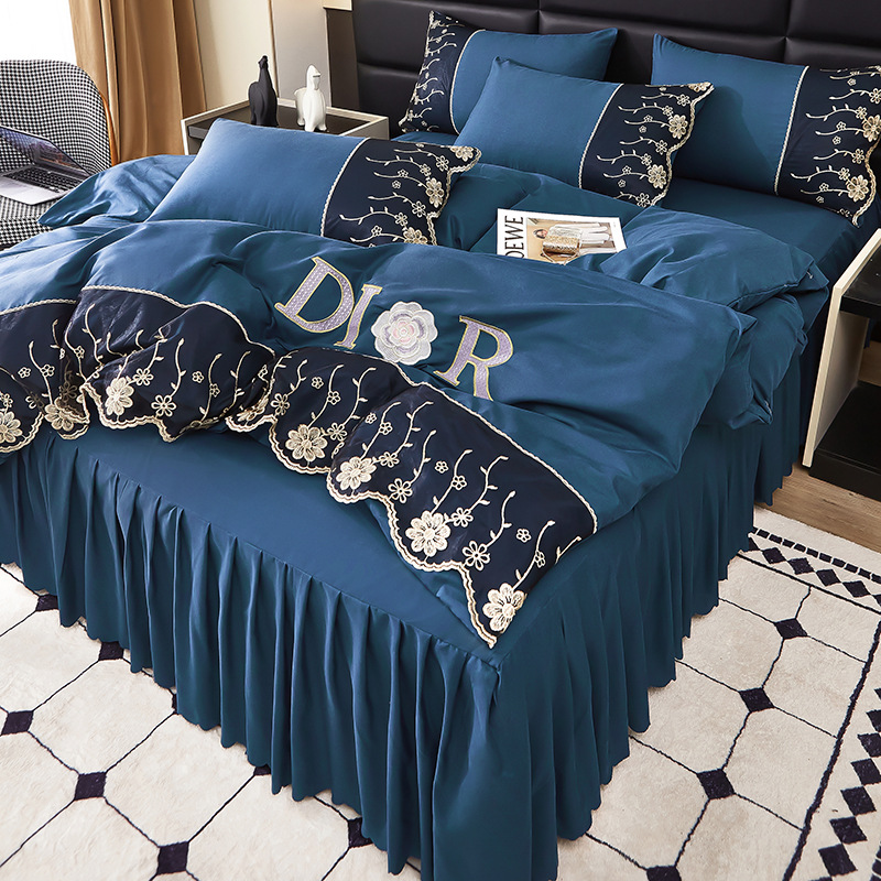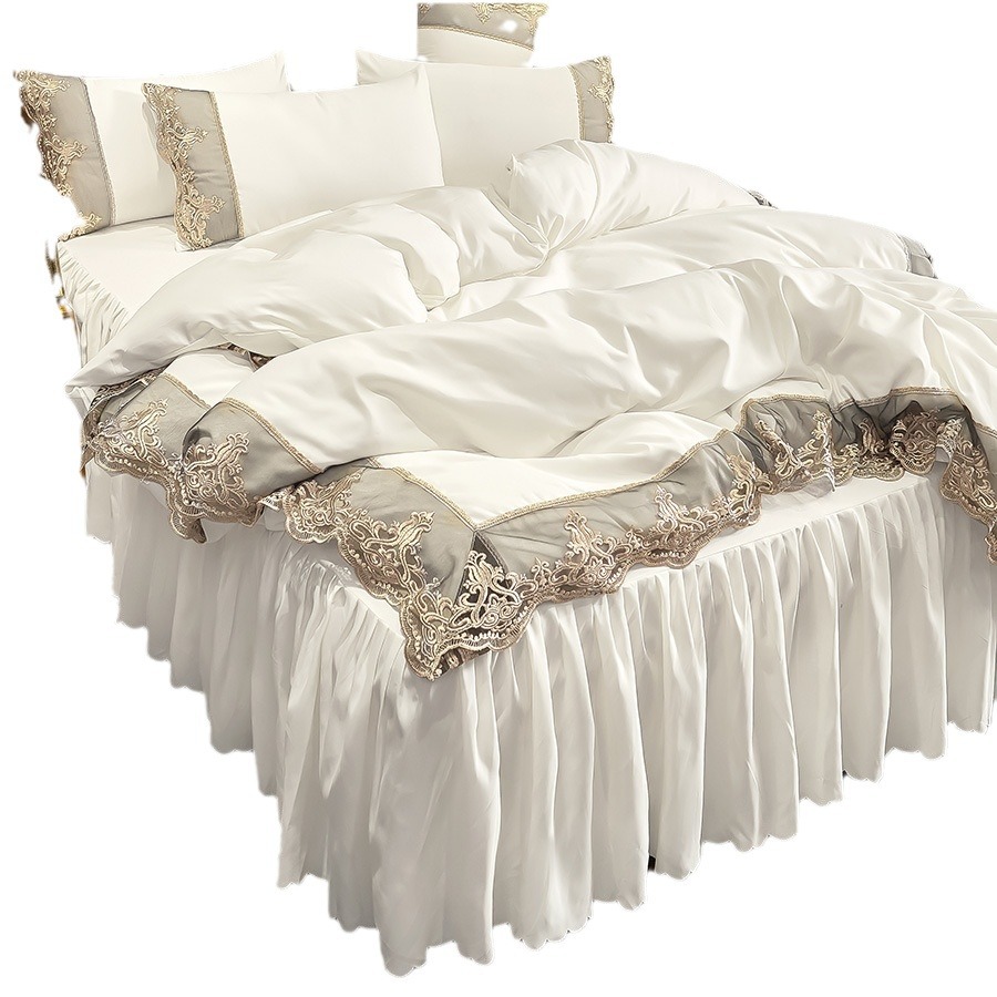 Трансграничное легкое роскошное кружевное покрывало с вышивкой в европейском стиле Amazon, Однотонная юбка-кровать из четырех предметов, три предмета оптом