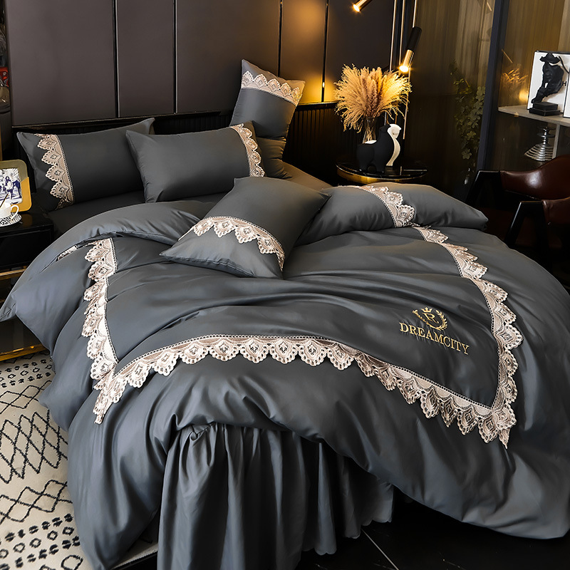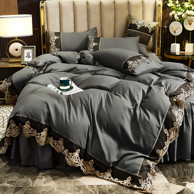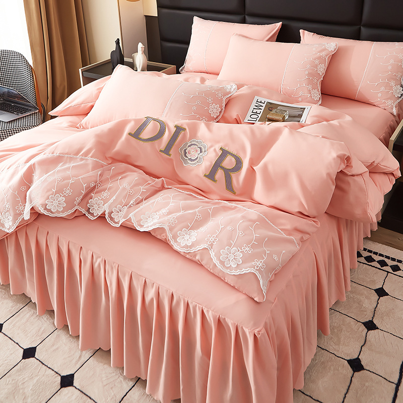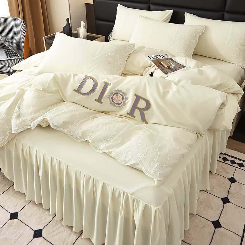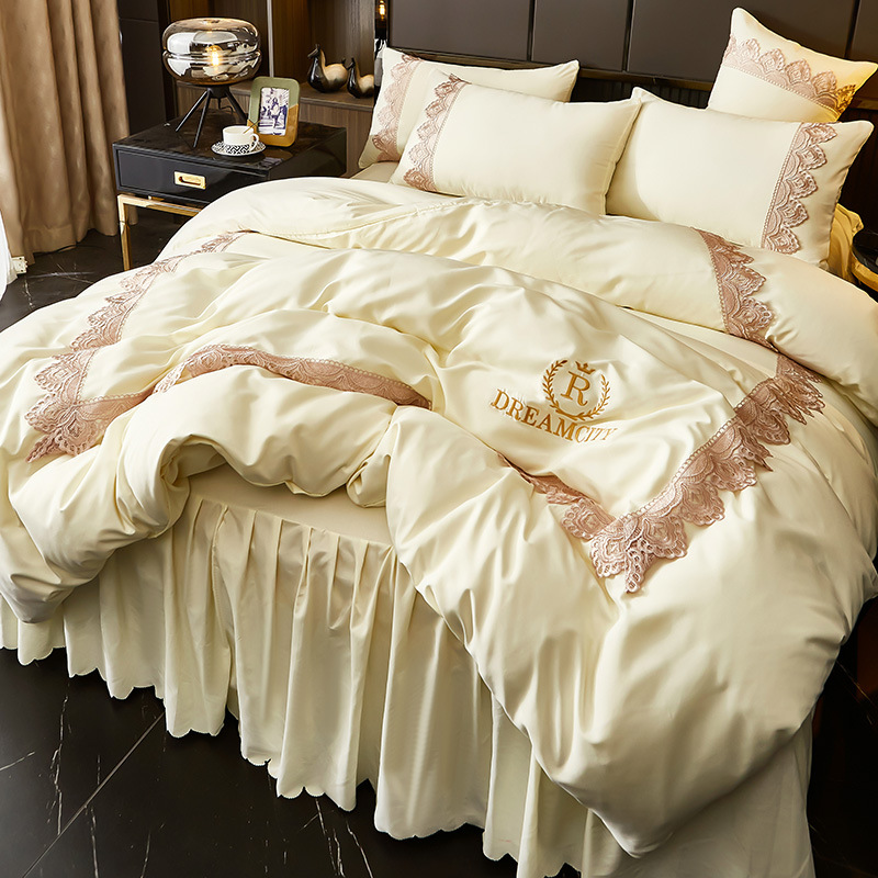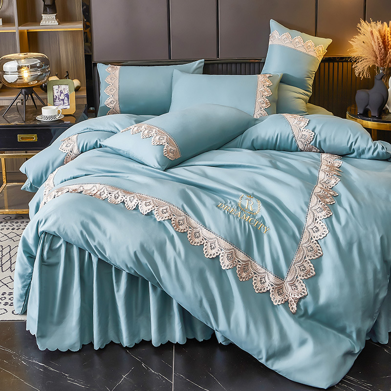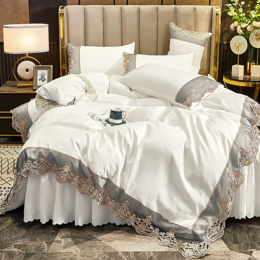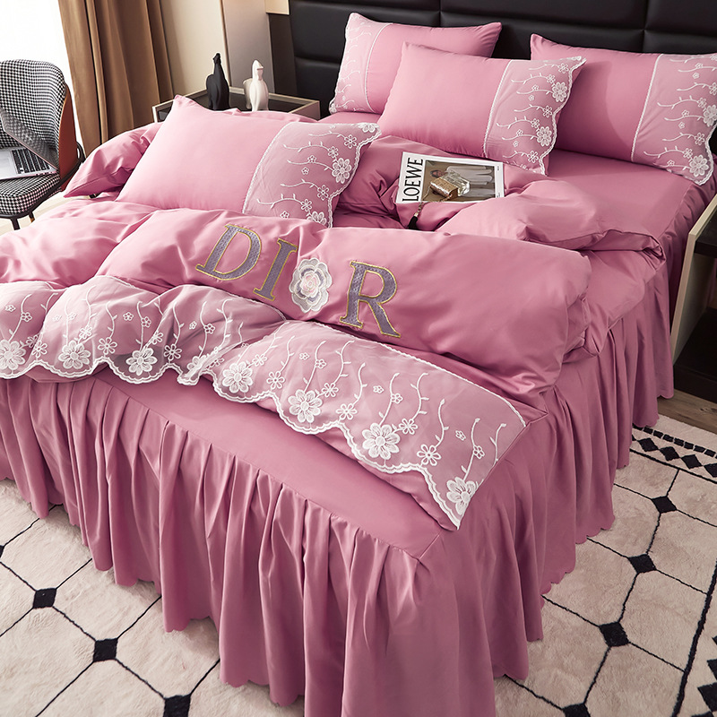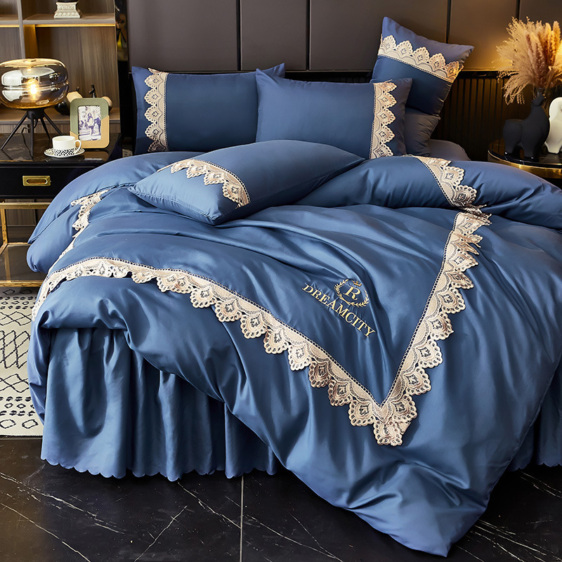 Трансграничное легкое роскошное кружевное покрывало с вышивкой в европейском стиле Amazon, Однотонная юбка-кровать из четырех предметов, три предмета оптом