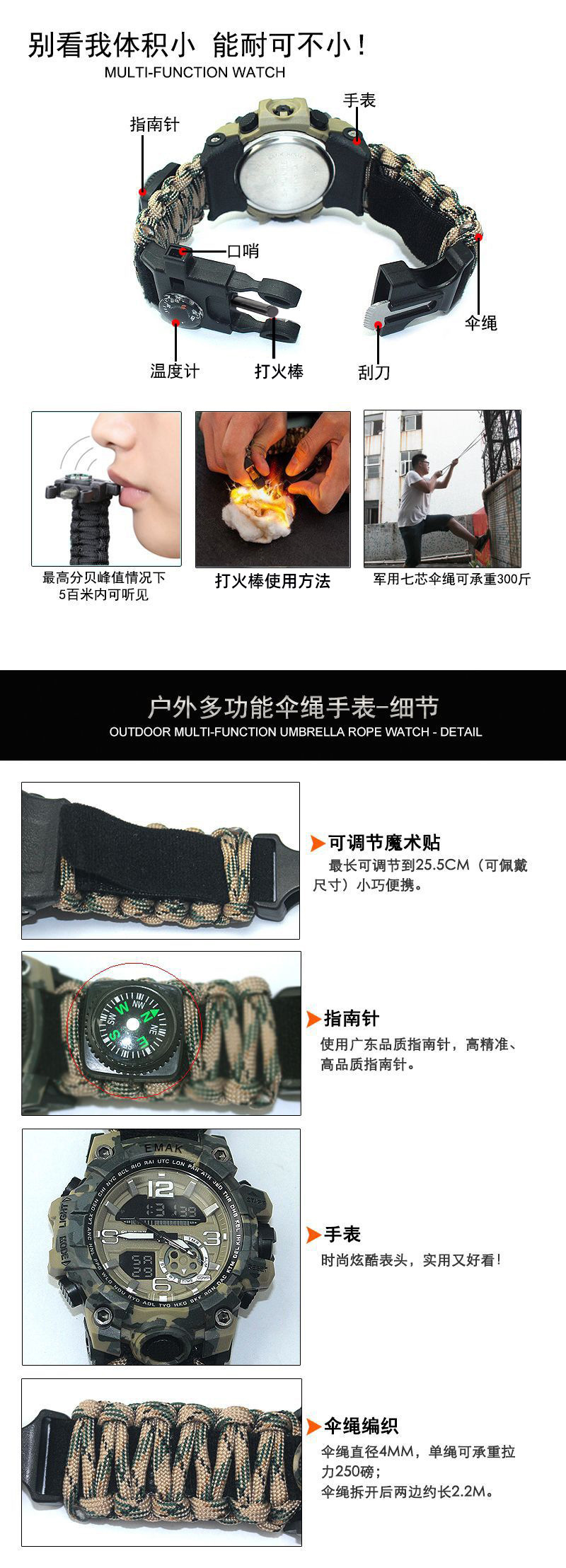 名称:户外多功能伞绳手表