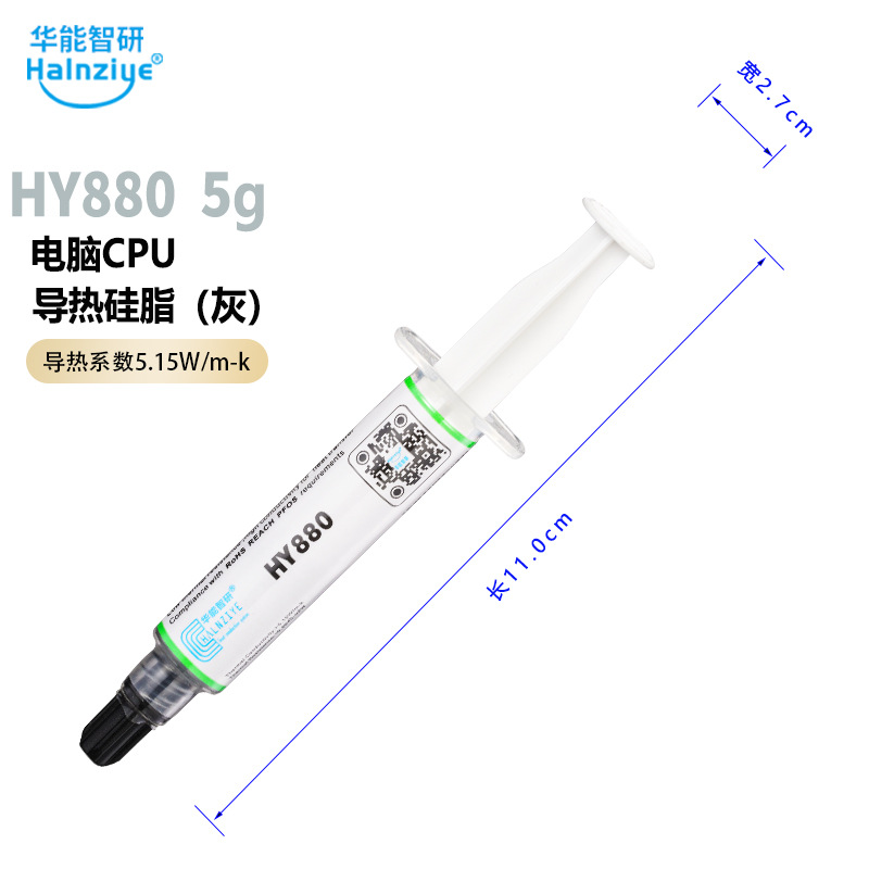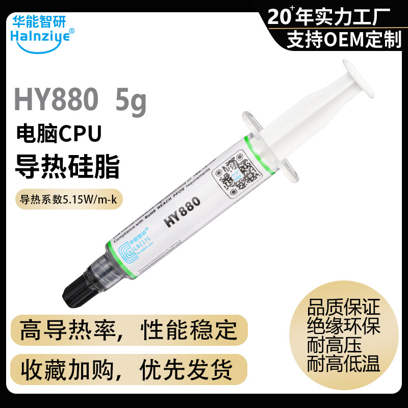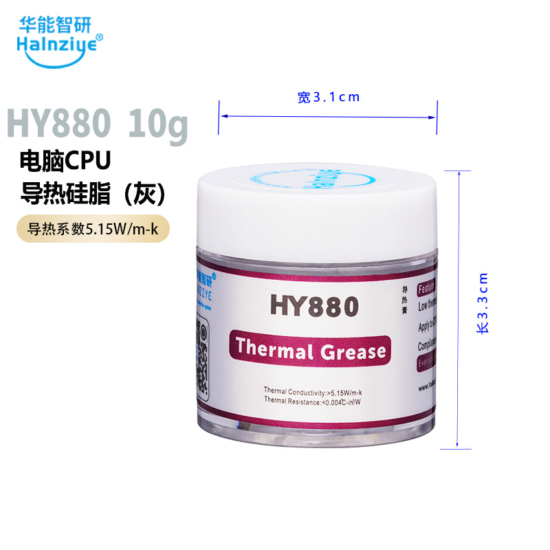 Huaneng Zhiyan HY880 Высокотемпературная термопроводящая силиконовая смазка Термопаста для процессора 5,15 Вт Термопаста для видеокарты [Cross Border]