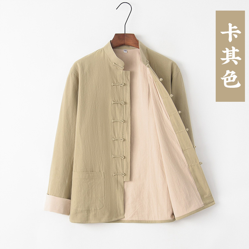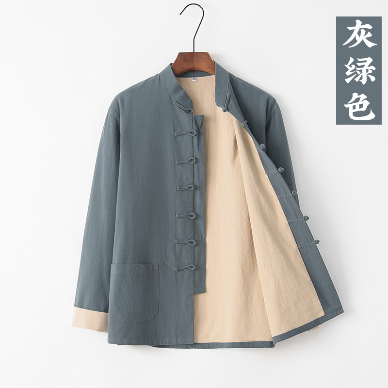 Костюм Тан, мужское повседневное пальто Тан, костюм Тан из хлопка и льна в китайском стиле, льняное мужское Двухслойное пальто, костюм для суши, весна-осень, зима