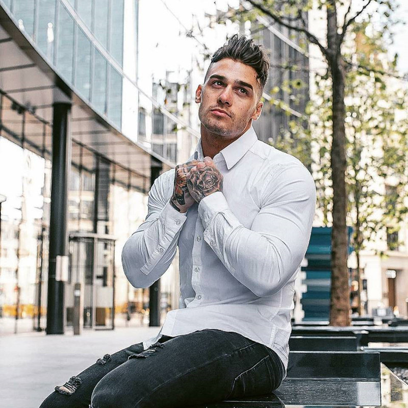 Мужская мускулистая рубашка для фитнеса, тренировочная рубашка для бега с длинными рукавами, облегающая, эластичная, быстросохнущая, без глажки, Спортивная мужская рубашка
