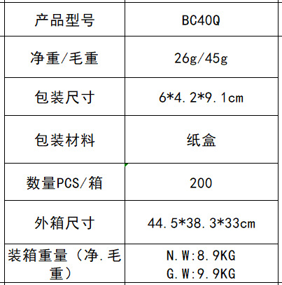 外箱尺寸:44.5*38.3*33cm 200PCS/箱