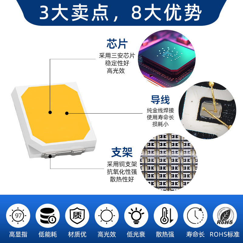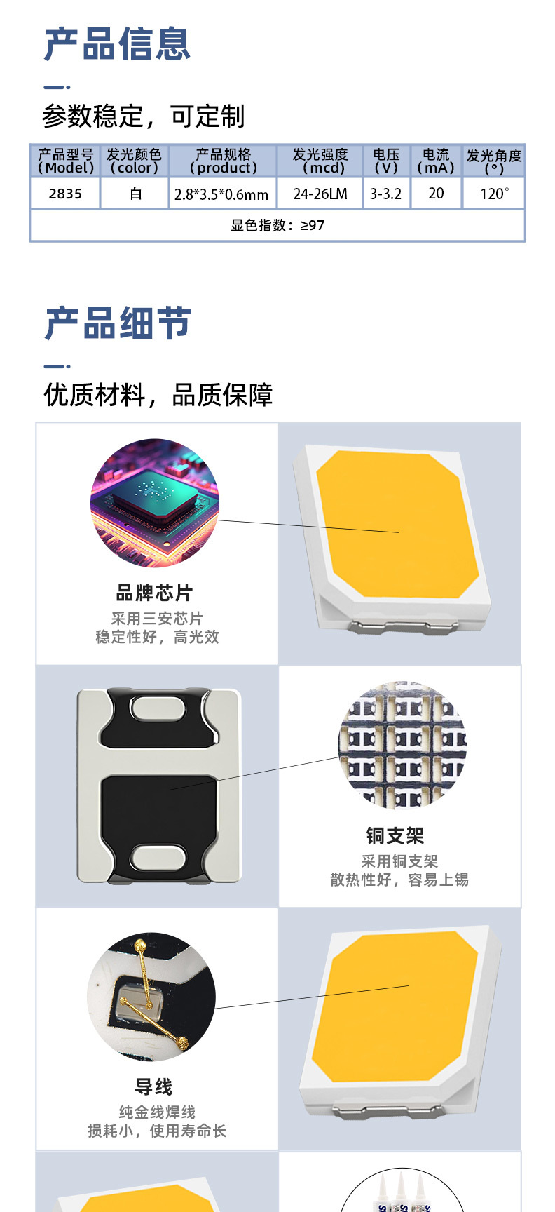 Светодиоды SMD 2835: прямые продажи, чипы San'an, ультраяркие, полноцветные, высокая яркость, высокая цветопередача, высокая светоотдача