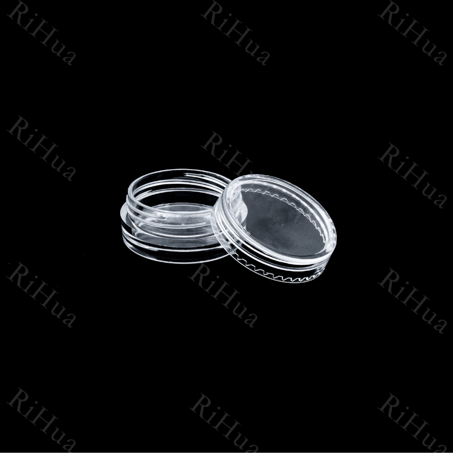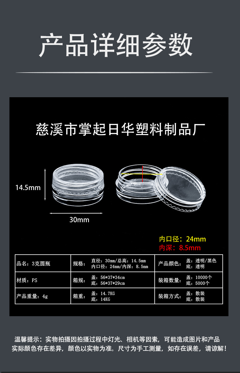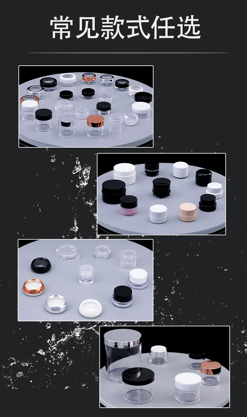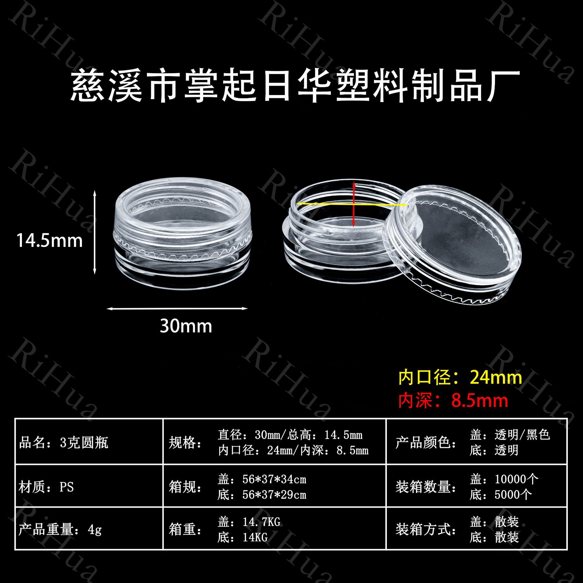 круглая бутылочка 3 г (прозрачная крышка); прозрачный; круглая бутылочка 3 г (черная крышка); прозрачный