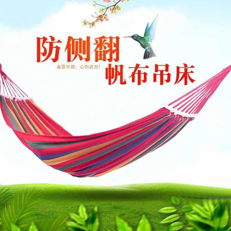 Уличный гамак-качели, холщовый гамак, утолщенный гамак с защитой от опрокидывания, одноместный/двухместный подвесной стул для кемпинга, готовый запас от производителя.
