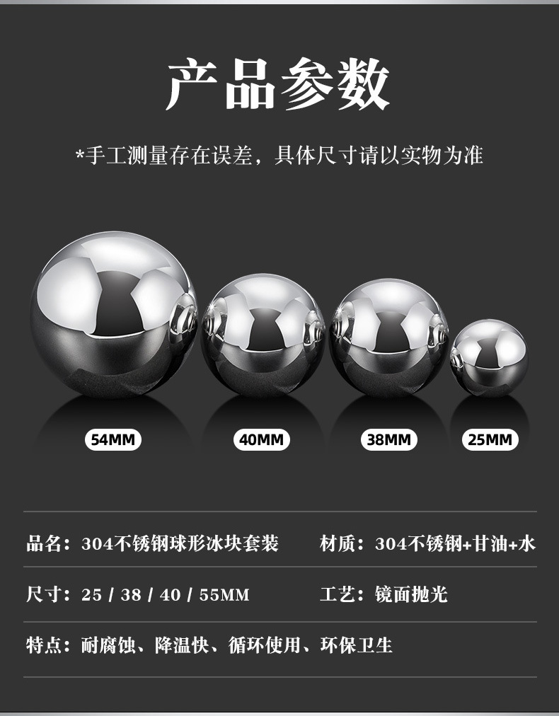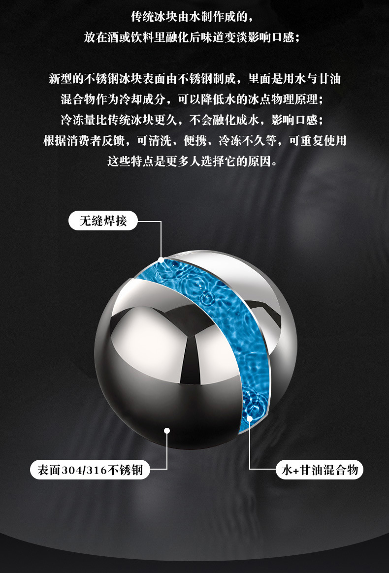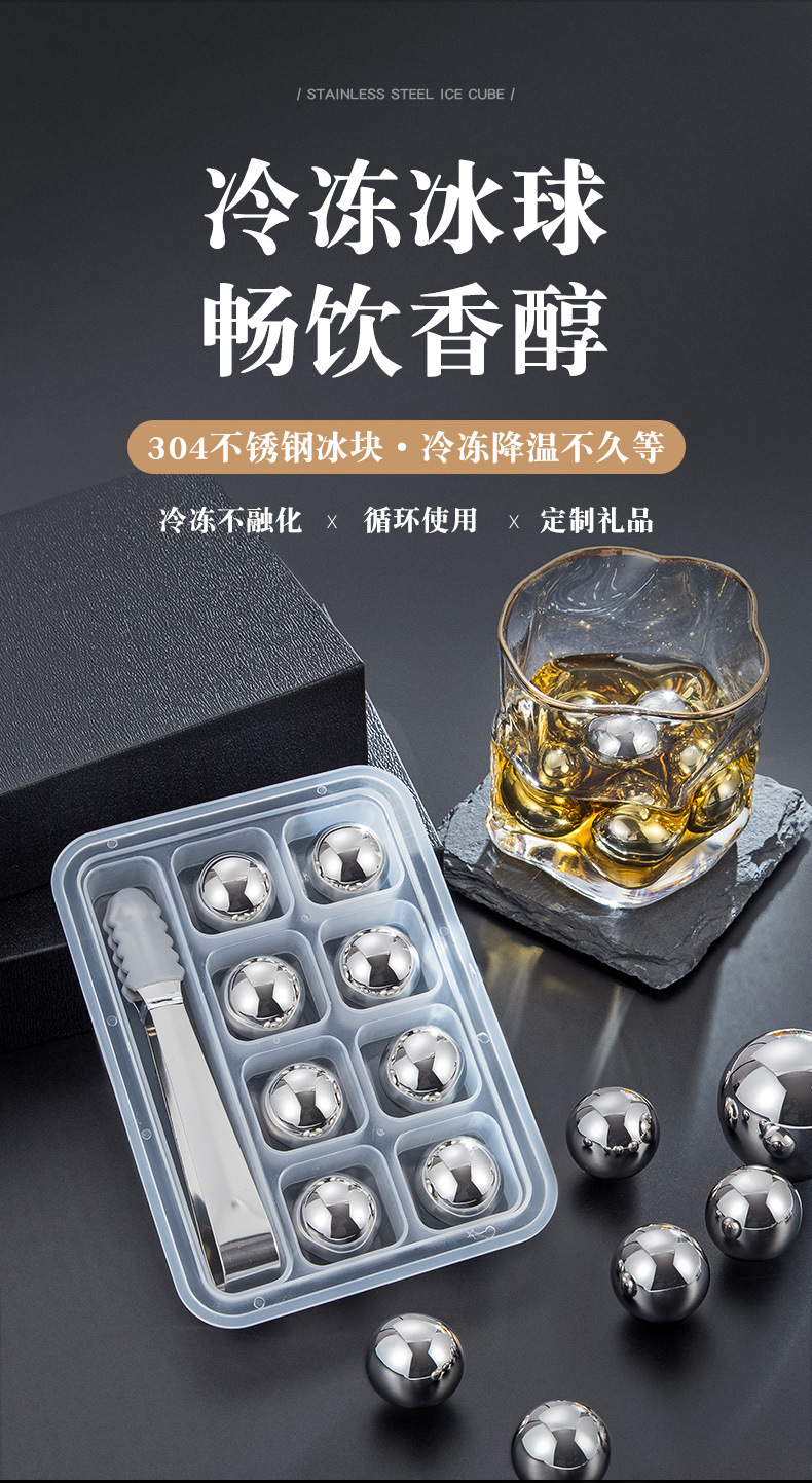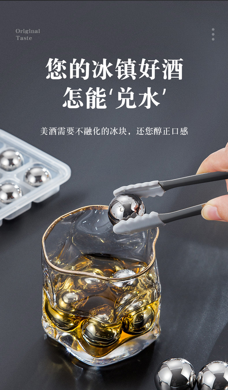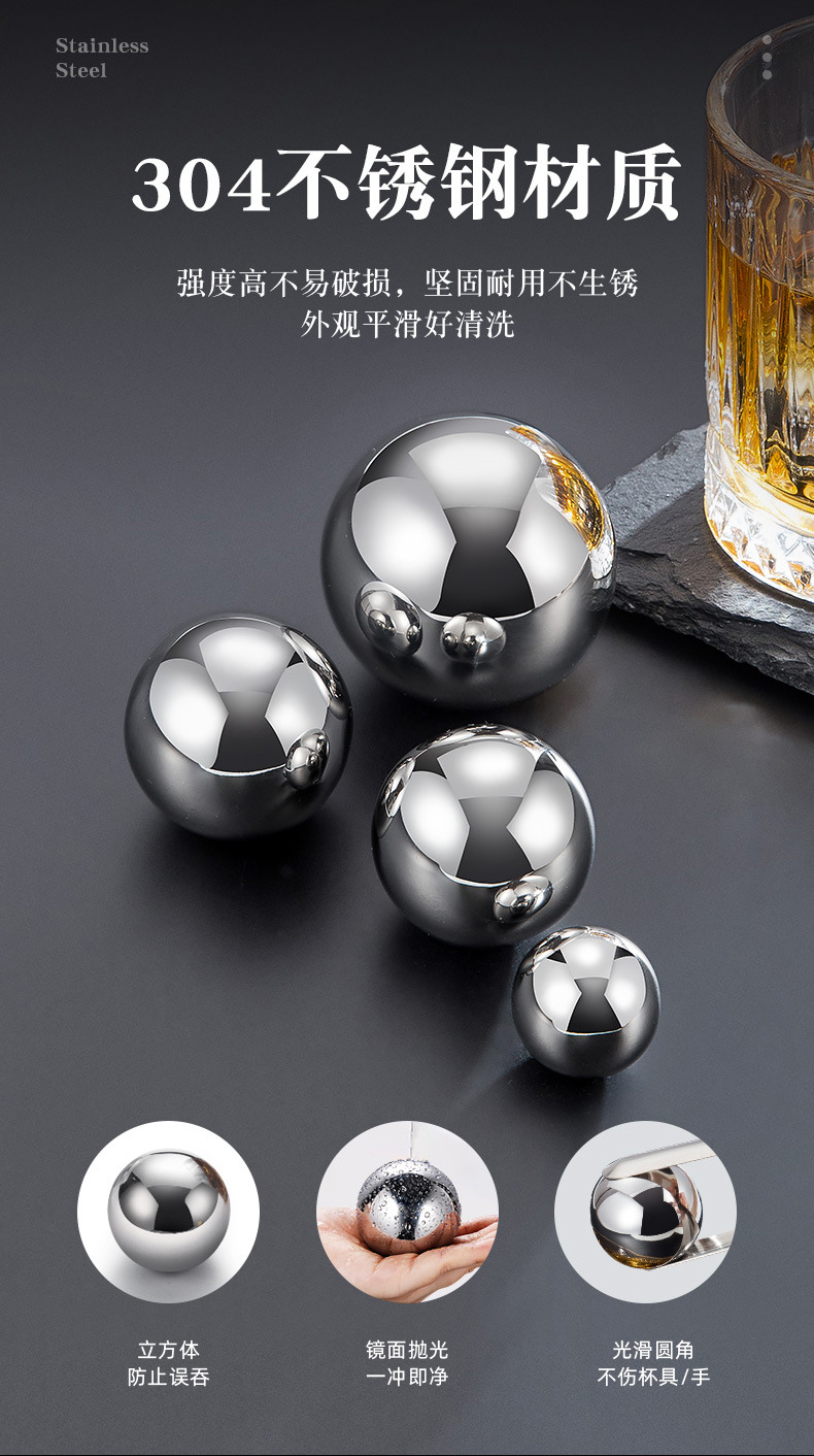 Кубик льда из нержавеющей стали Сферический ледяной вино камень 304 стальной блок ледяные винные изделия Металл 55 мм кубик льда клип оптом