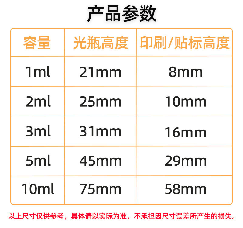 1 мл (16*21); коричневая тяговая трубка + вогнутая пробка + мелкозернистая черная крышка; стекло; 2 мл (16*25); коричневая тяговая трубка + вогнутая пробка + мелкозернистая черная крышка; стекло; 3 мл (16*31); коричневая тяговая трубка + вогнутая пробка + мелкозернистая черная крышка; стекло; 4 мл (16*35); коричневая тяговая трубка + вогнутая пробка + мелкозернистая черная крышка; стекло; 5 мл (16*45); коричневая тяга + вогнутая пробка + мелкозернистая черная крышка; стекло; 10 мл (16*75); коричневая тяга + вогнутая пробка + мелкозернистая черная крышка; стекло