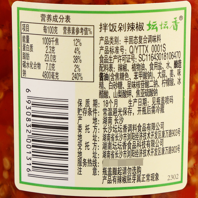 配料表:辣椒、植物油、食用盐、水、酿造酱油(含焦糖色、苯甲酸按)、大蒜、姜、味精等,以产品外包装实际信息为准
