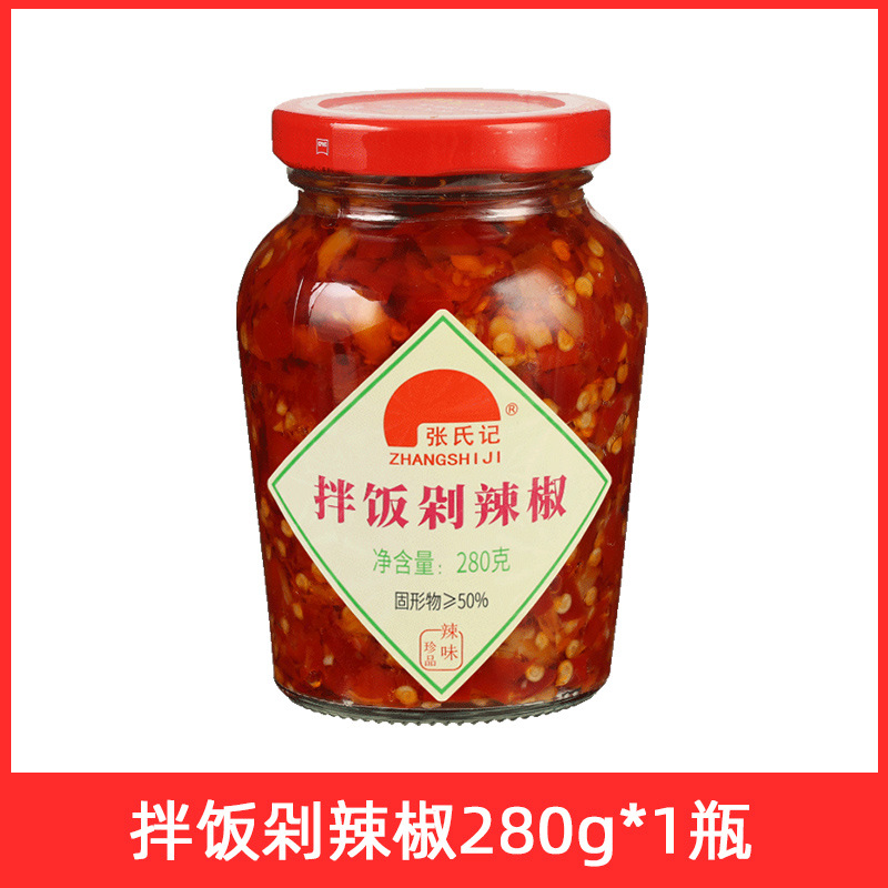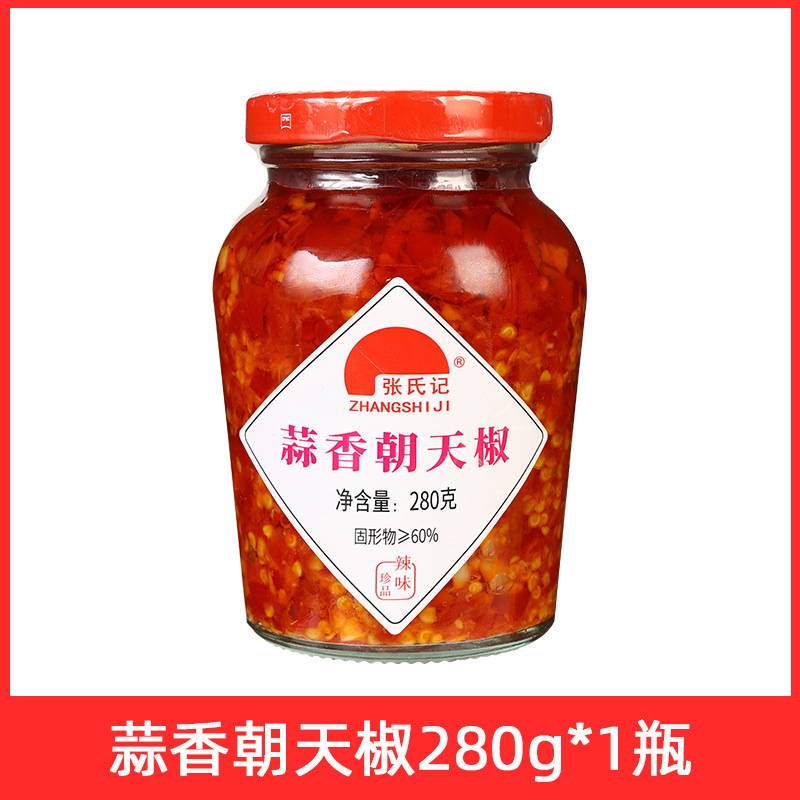 280 г бибимбапа с измельченным перцем чили; Головка рыбы на пару с маринованным перцем 280г; Чаотийский перец с чесноком 280г; 280 г хаотианского перца со вкусом черной фасоли; Чжан Цзи Бибимбап, нарезанный перец чили 280 г; Перец Чили Чжана Чили 280г; Чжан Цзи Чесночный Чаотянский перец 280г