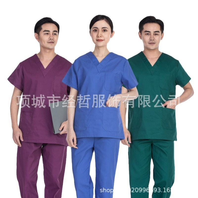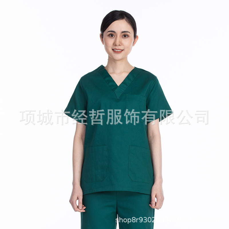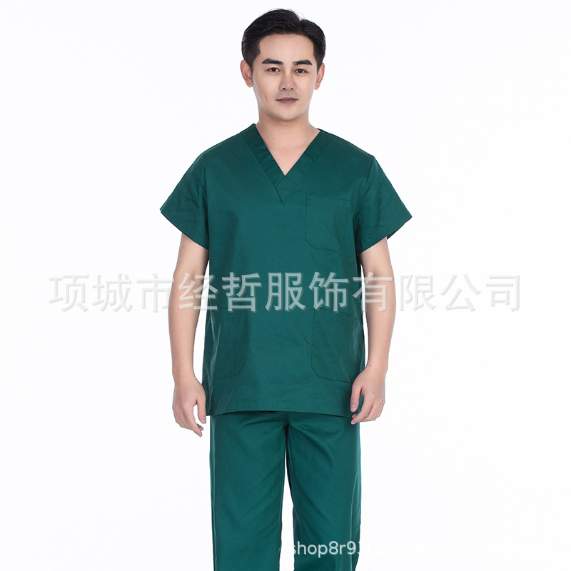 Мужская и женская одежда для ручной стирки, хлопковая изоляционная одежда для операционной с короткими рукавами, темно-зеленая одежда для ручной стирки, разделенный комплект рабочей одежды для медсестры полости рта