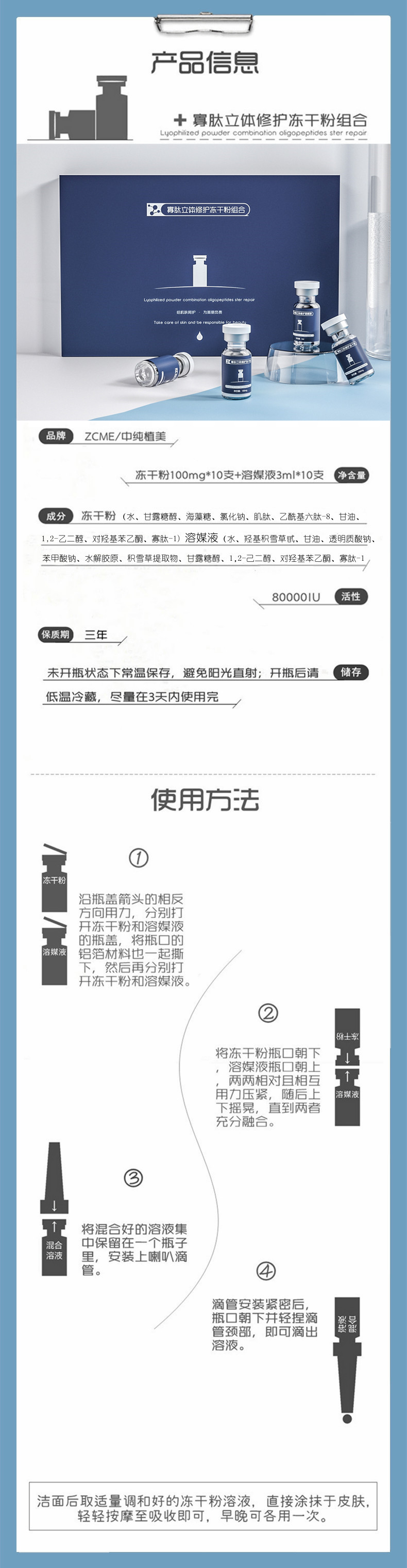 Оолигопептид восстанавливает лиофилизированный порошок для восстановления сыворотки 80 000 активных следов от прыщей