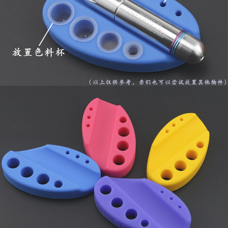 很漂亮的笔托,用来放仪器非常合手,旁边的孔可以放色料杯,小孔还可以插棉签~~