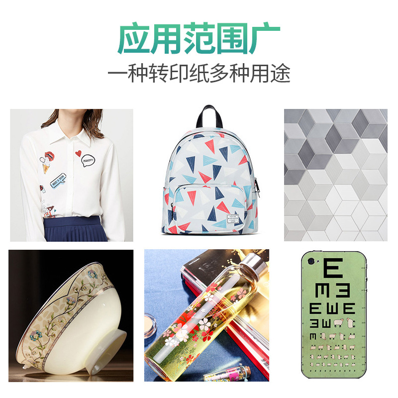 高品质热升华转印图文色彩鲜艳、丰富、其效果可与印刷相媲美,热升华转印是在高温下使热转印墨水受热升渗入物体,凝华后即形成色彩亮丽的图像。所以,热转印产品经久耐用,图像不会脱落,龟裂和褪色。热转印专用纸能均匀,充足吸收热转印墨水,在高温状态下又有将吸收的热转印墨水从纸中释放出去,分散率达到95%以上,将颜色转移到材料上。