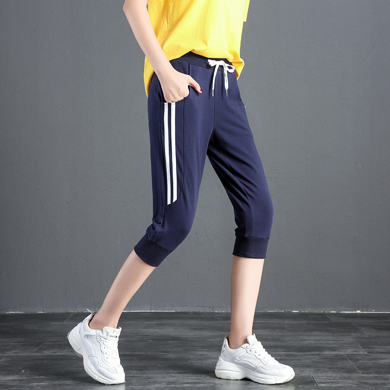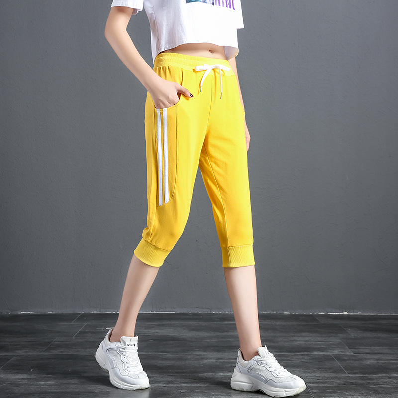 Спортивные укороченные брюки женские летние 2019 Новые повседневные бриджи в Корейском стиле свободные брюки Harlan тонкие шорты для бега и фитнеса
