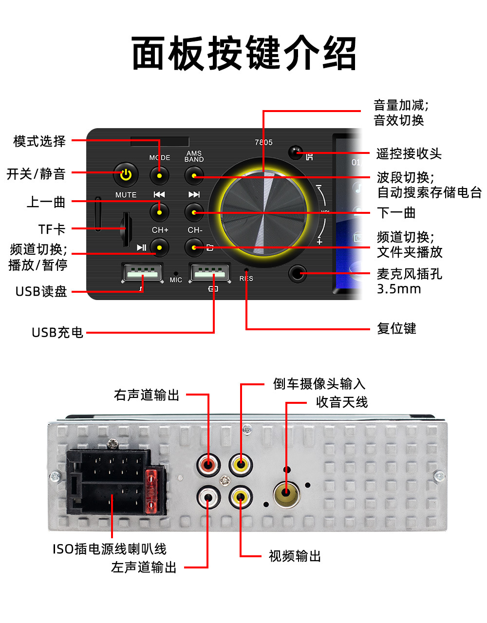 12 В Универсальный 4-дюймовый HD двойной USB автомобильный MP5-плеер Bluetooth Громкая связь с реверсивным изображением автомобильная карта MP3