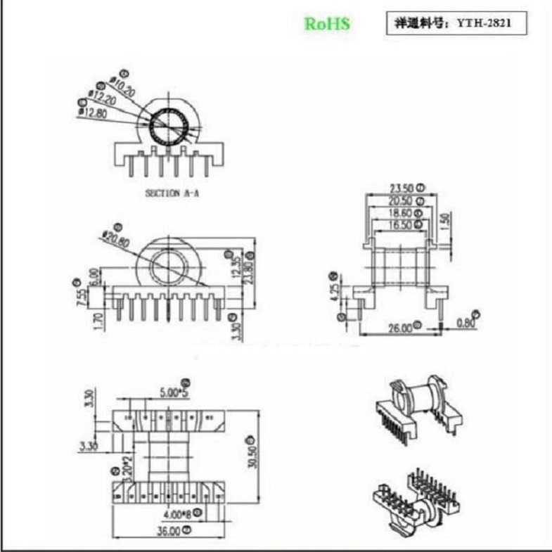 1.变压器骨架 bobbin 实物图/尺寸