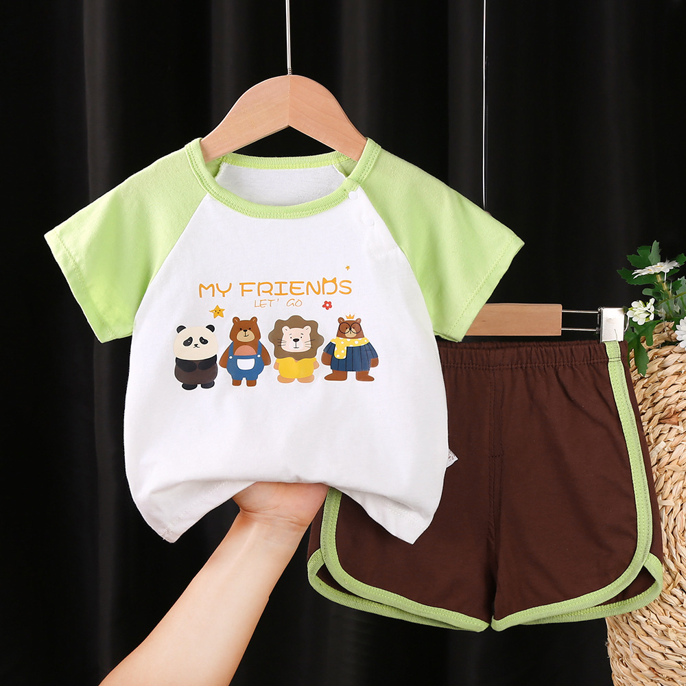 Детский комплект с короткими рукавами хлопчатобумажная летняя футболка для мальчиков две детские детские одежды Корейская версия детской одежды новый