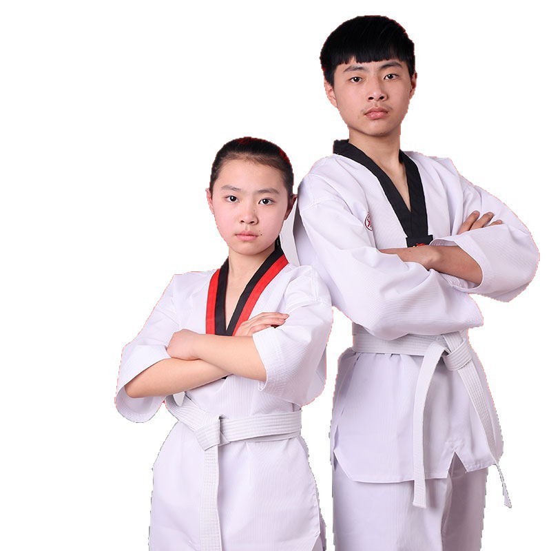 Производитель оптом продает костюмы для тхэквондо для взрослых и детей, утолщенные соревновательные костюмы, тренировочные костюмы для тхэквондо, трансграничная фабрика.