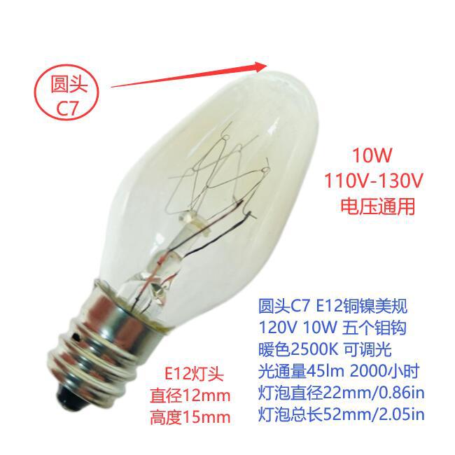 Лампа накаливания C7 стандарта США E12, 110-120В, 15Вт/7Вт/10Вт, для соляных ламп, ночник, с регулировкой яркости