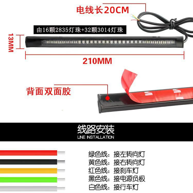 产品名称:48SMD摩托车通用灯条LED刹车灯 转向灯 套管防水摩托车牌照尾灯