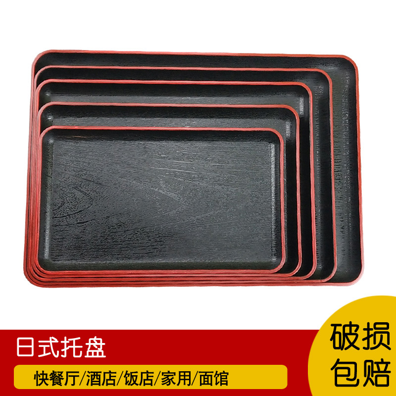 Поднос в японском стиле Имитация дерева Прямоугольная пластиковая обеденная тарелка Гостиничный Ресторан Концевой поднос Чайный поднос Нескользящая тарелка для фаст-фуда Бытовой поднос
