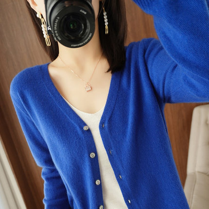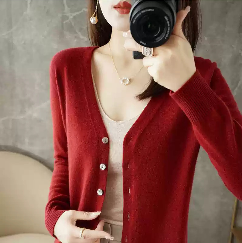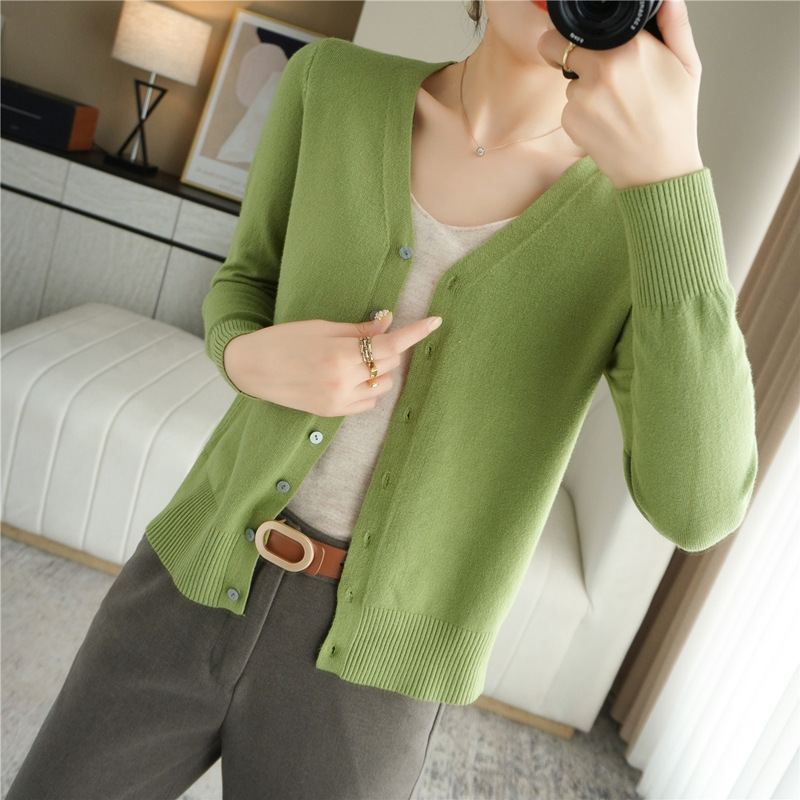 Новинка, Женское пальто, вязаный кардиган с длинными рукавами и V-образным вырезом, женский короткий тонкий однотонный приталенный свитер в Корейском стиле, новинка весны 22