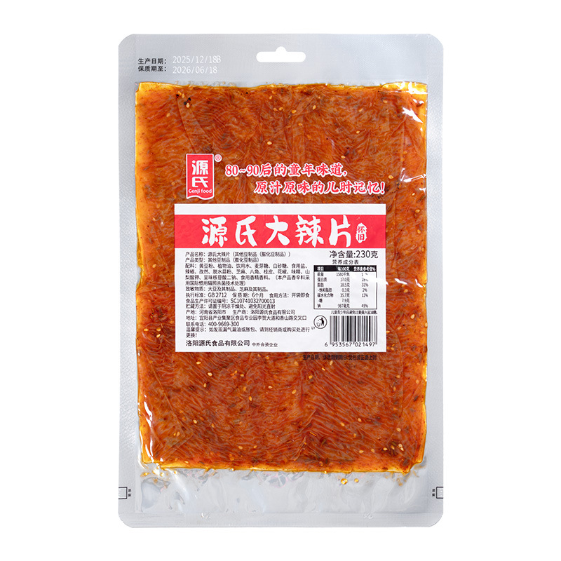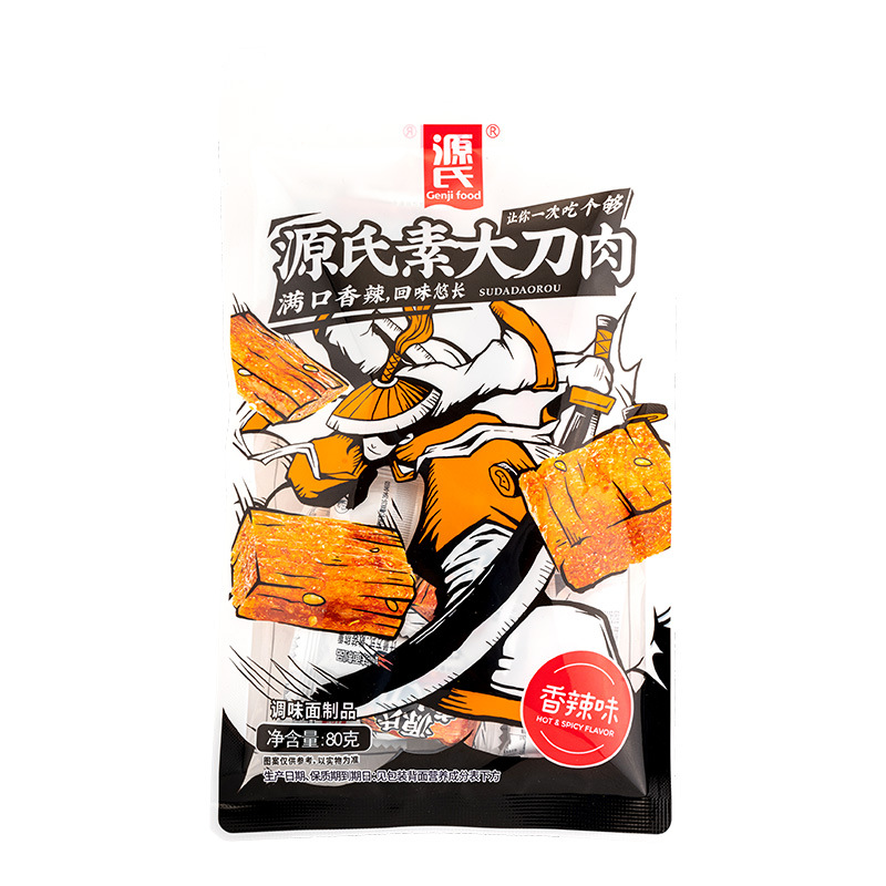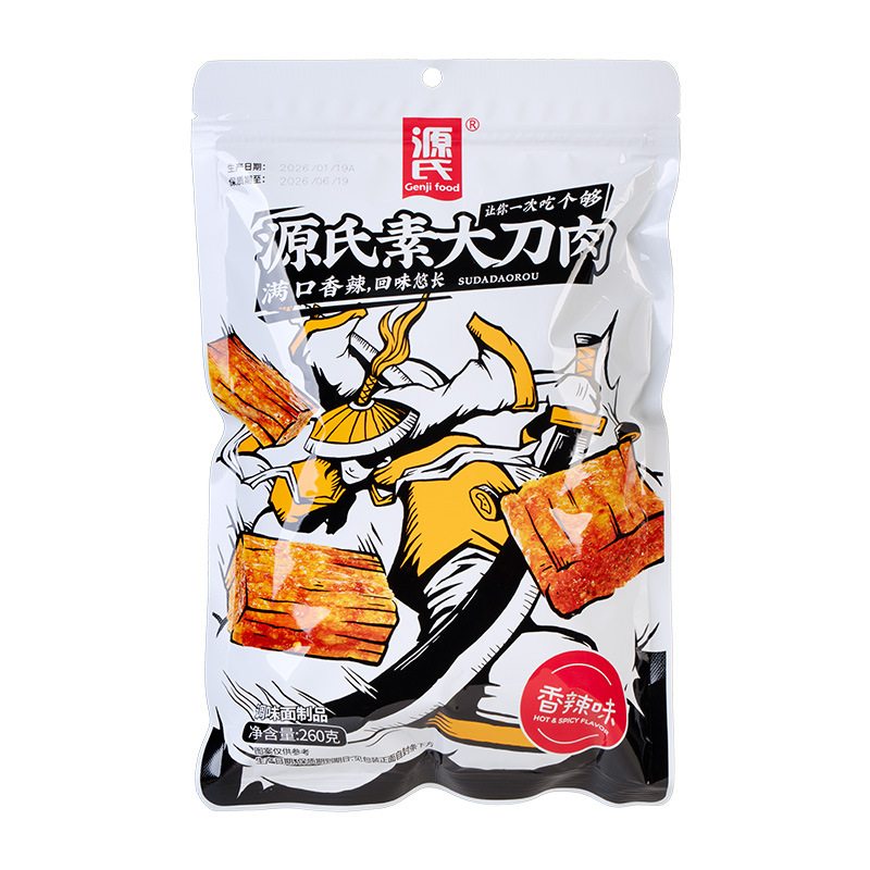 68 г старомодных острых ломтиков; 148 г старомодных острых ломтиков; 148 г больших острых ломтиков (сильная острота); 200 г старомодных острых ломтиков; 230 г крупных острых ломтиков; 108 г ломтиков острой кунжутной пасты; 200 г глютена соевого сои Genji; 70 г соевых мышц; 260 г Genji Da Knife Pork (содержит около 40 пакетиков); 80 г вегетарианского мяса Genji (в комплекте около 14 упаковок); 90 г крупного глютена, измельченного вручную; 90 г нарезанных вручную острых ломтиков; 90 г нарезанных вручную острых палочек; 65 г жареного тофу; 65 г рулетов из жареных бобов; 65 г измельченных жареных бобов; 65 г острых ломтиков на гриле; 60 г пикантных протеиновых полосок Wu Ling