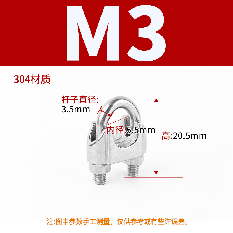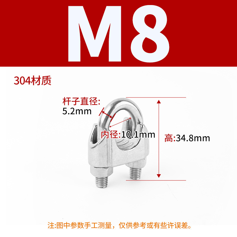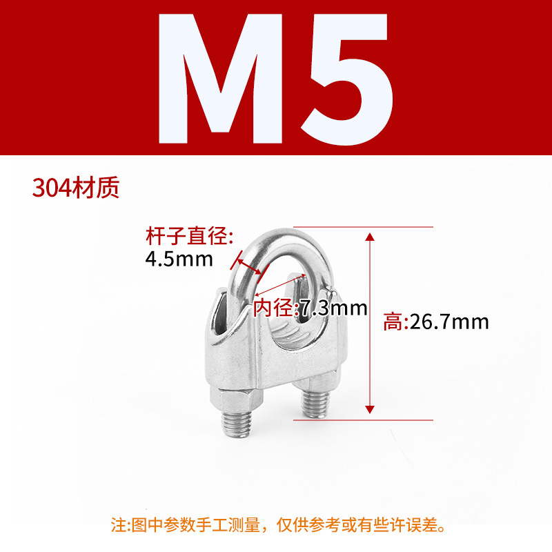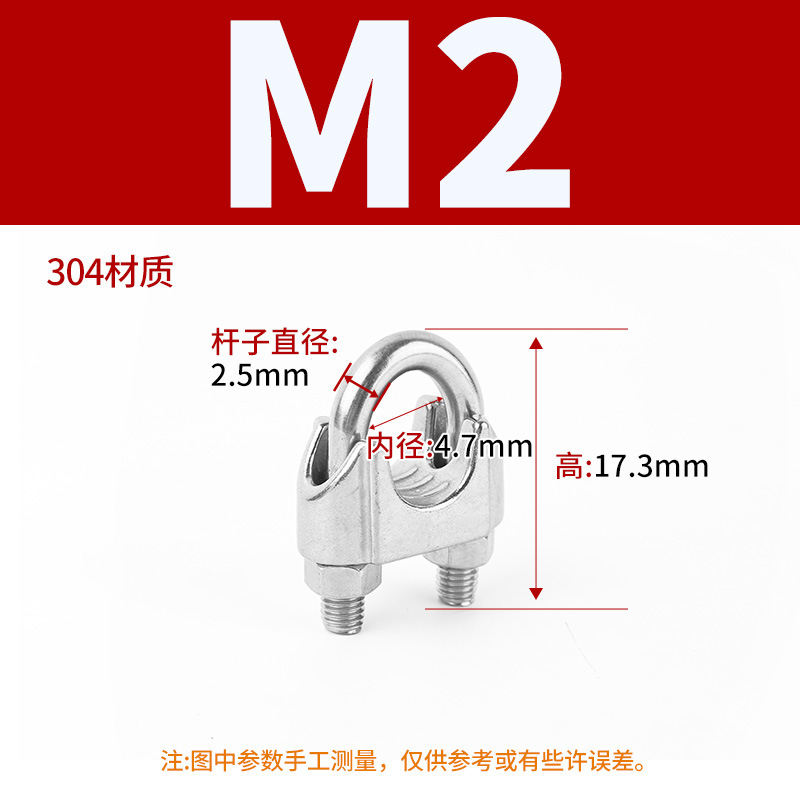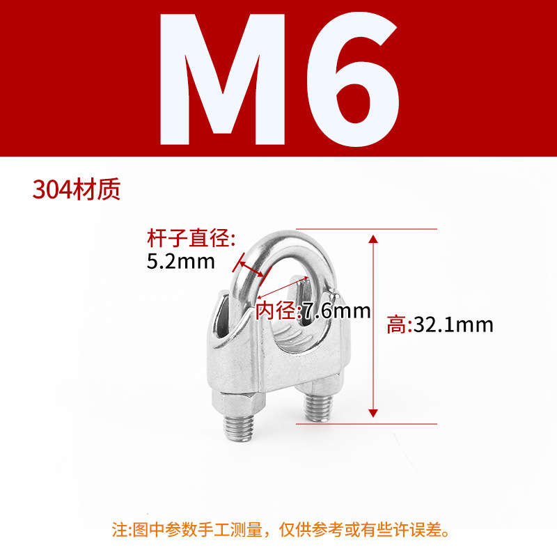Трос из нержавеющей стали 304, головка патрона, веревочная пряжка, зажим из стальной проволоки с подвижной головкой, U-образный зажим M2345681012