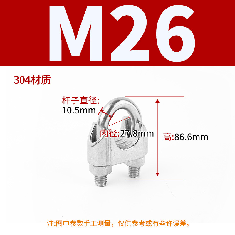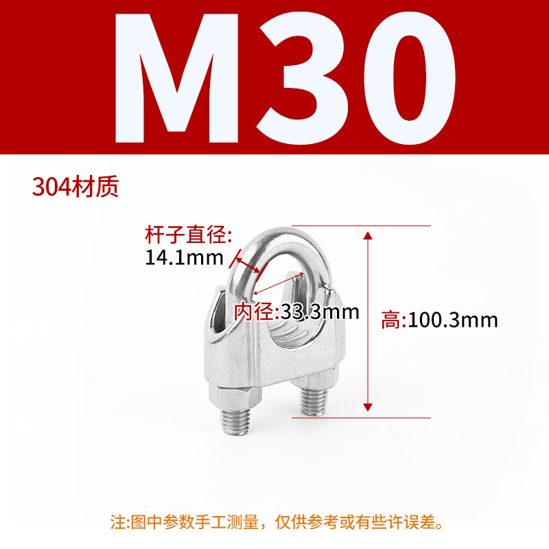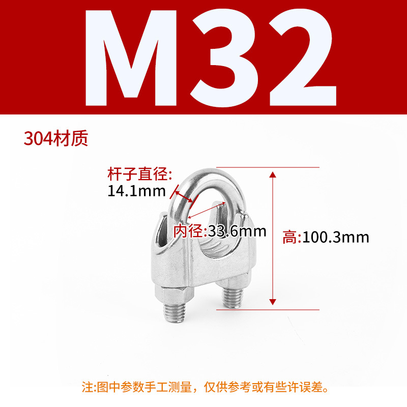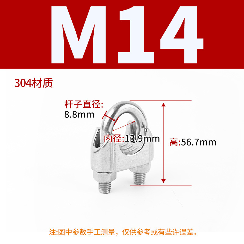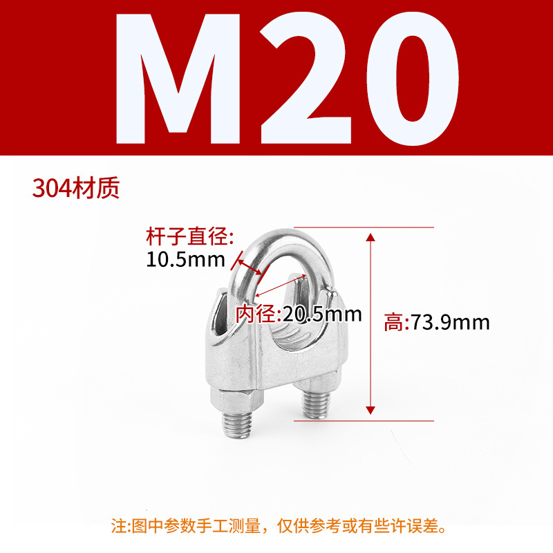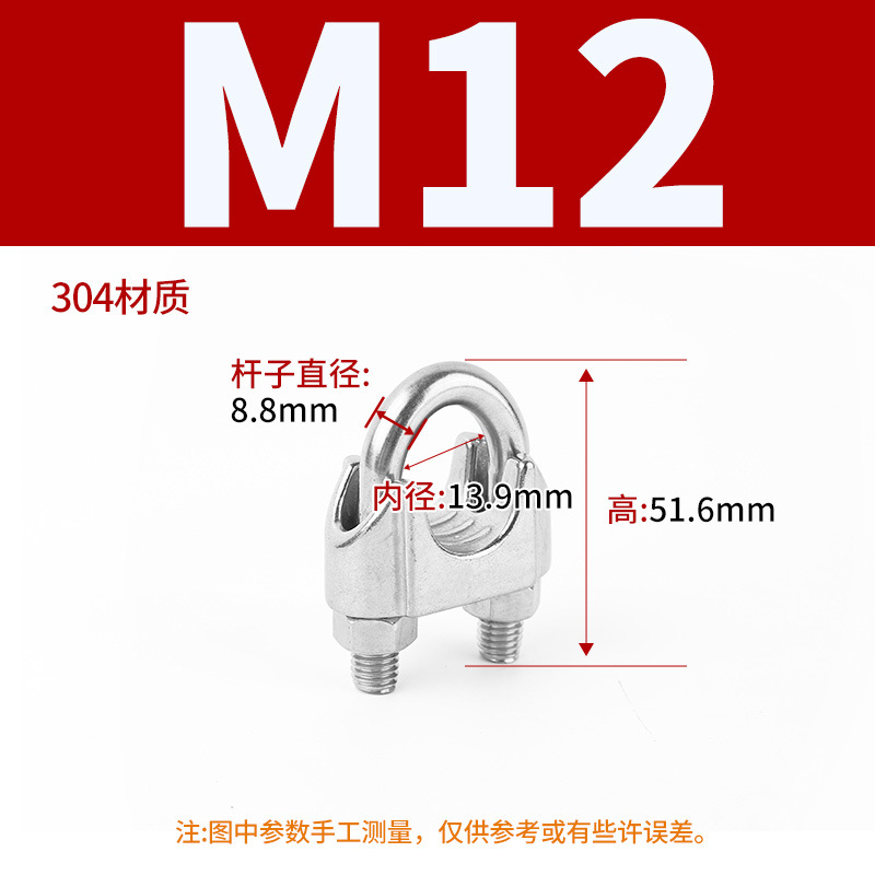 Трос из нержавеющей стали 304, головка патрона, веревочная пряжка, зажим из стальной проволоки с подвижной головкой, U-образный зажим M2345681012