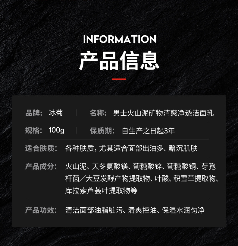Ледяная Хризантема Мужская вулканическая грязь Минеральное освежающее очищающее средство