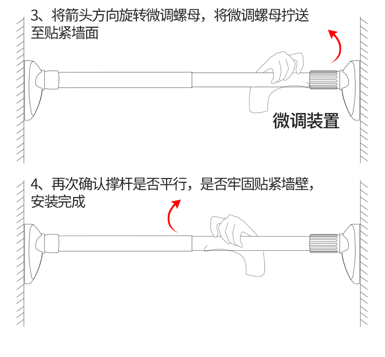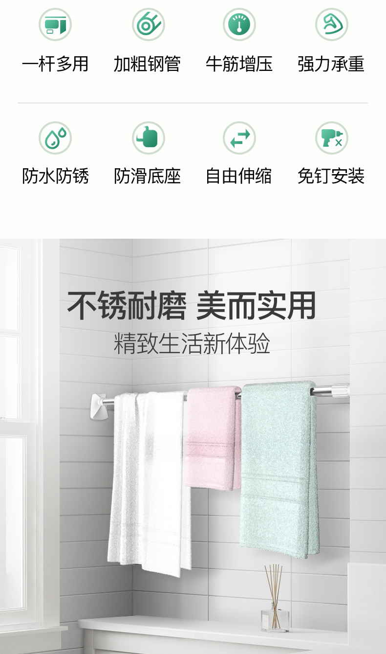 单个客户购买须知:请先找客服询问使用视频,确认会使用了在购买会更加愉快使用哦。这是免打孔的,是杆子的承重不会让杆子弯曲,要是想长期挂重物使用可以购回自行打孔上墙。2.8-3.2的墙面380是用不了的哦,亲注意看这里的细节。