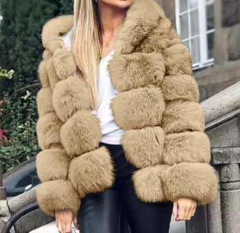 Европейская и американская оптовая продажа: новая женская приталенная шуба средней длины из искусственного меха с капюшоном, осень-зима 2025