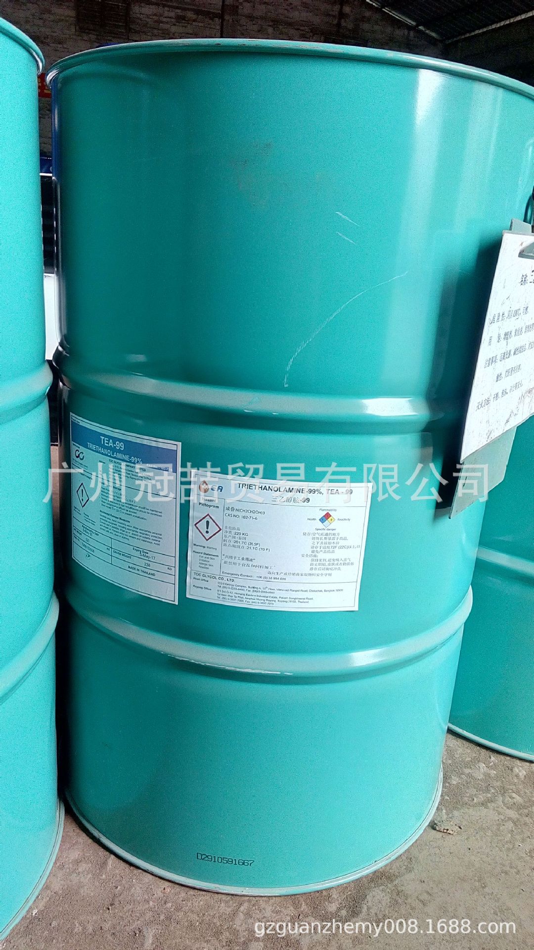 中文别名:2,2’,2’’-次氮基三乙醇;2,2’,2’’-三羟基三乙胺;氨基三乙醇;工业三乙醇胺;三乙醇胺;三羟乙基胺;三(2-羟乙基)胺;三羟基三乙胺