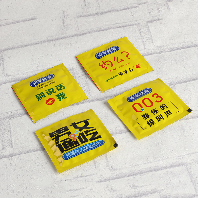 Заводское производство небольшая сумка для общественного питания рекламная Влажная Ткань креативная пародийная крышка Влажная Ткань полотенце для лица презерватив влажная ткань