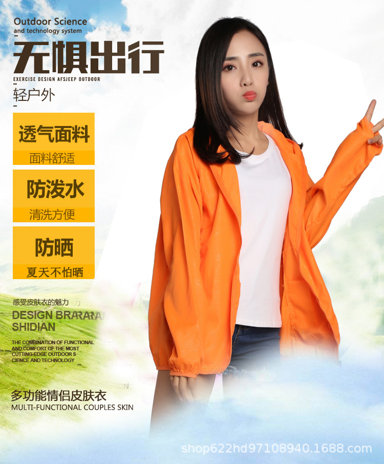 Весна и осень Уличная Солнцезащитная одежда для мужчин и женщин Легкая Однослойная водонепроницаемая Спортивная одежда для верховой езды Ветровка Быстросохнущая кожная одежда