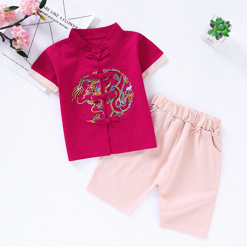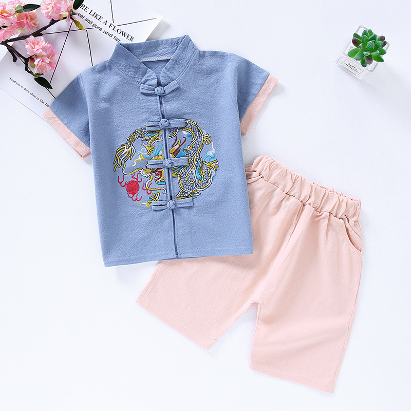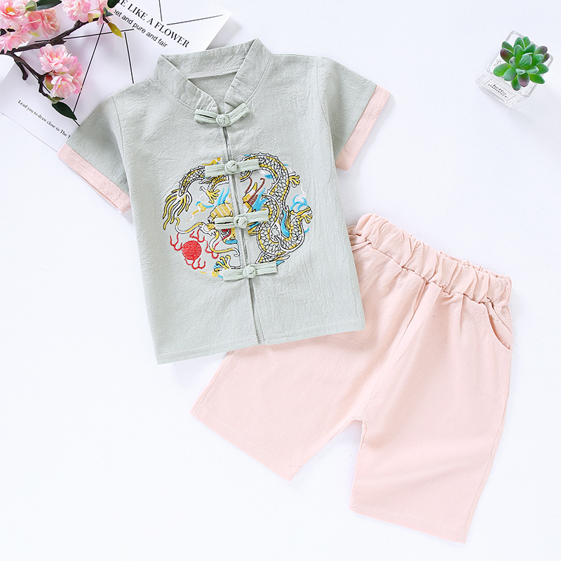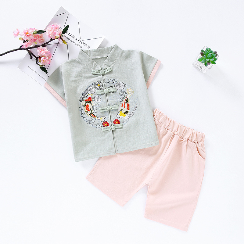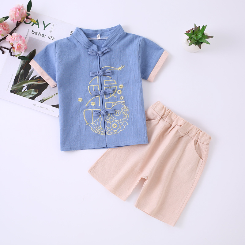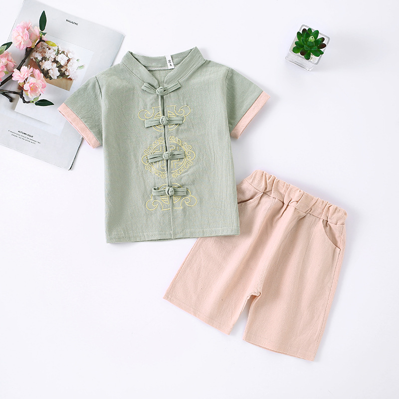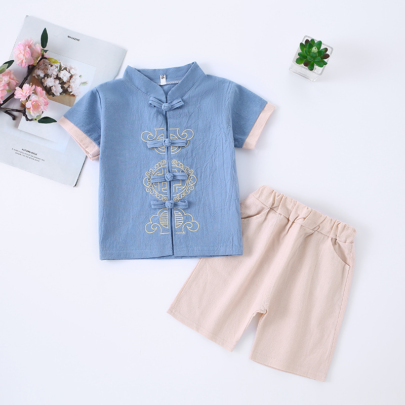 Трансграничная детская одежда Hanfu Детская ретро-улучшенная одежда Tang Summer Boy Girhs хлопчатобумажный набор для девочек в китайском стиле