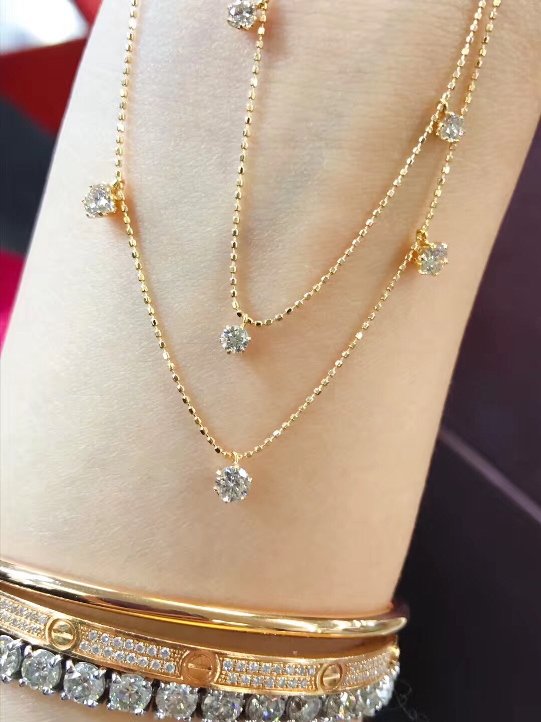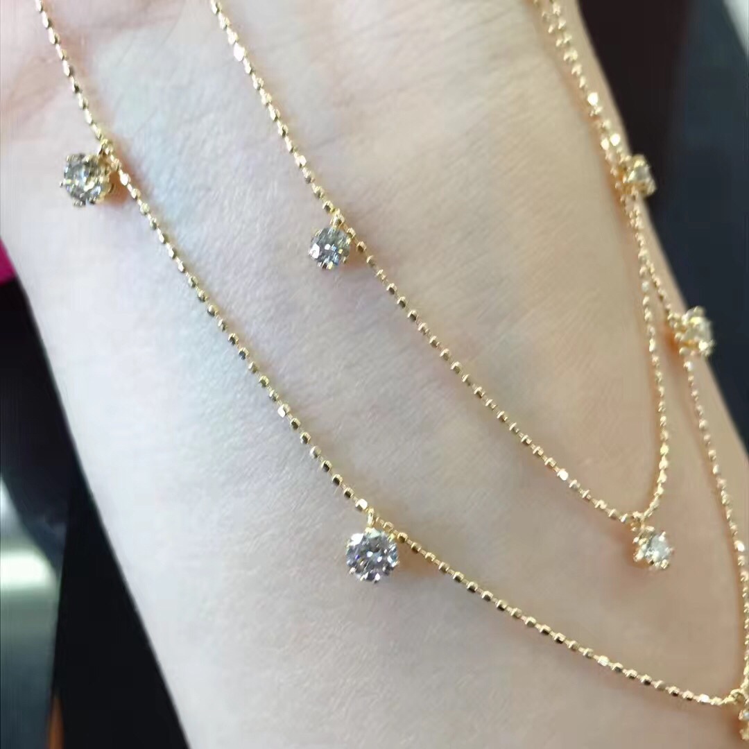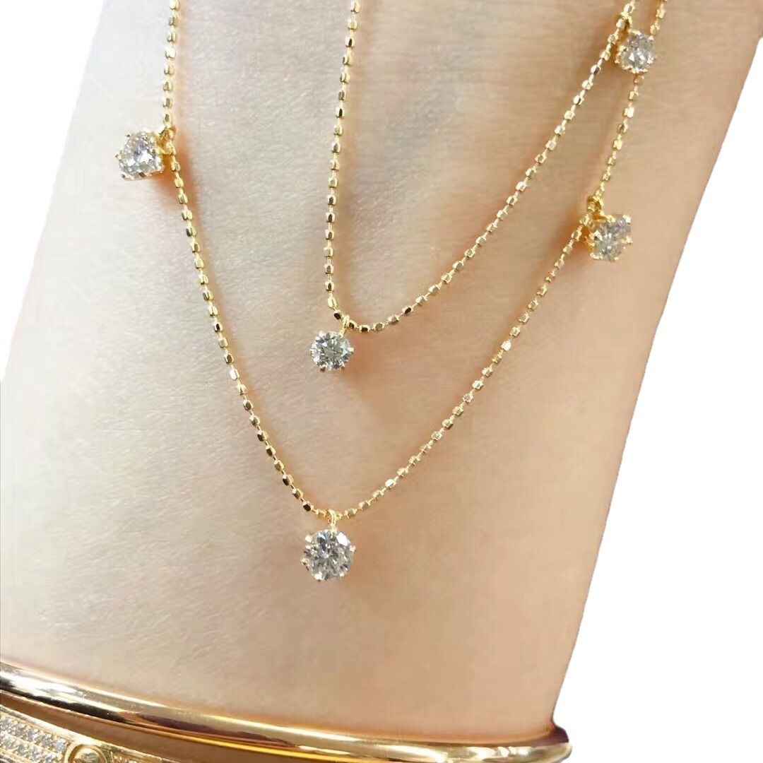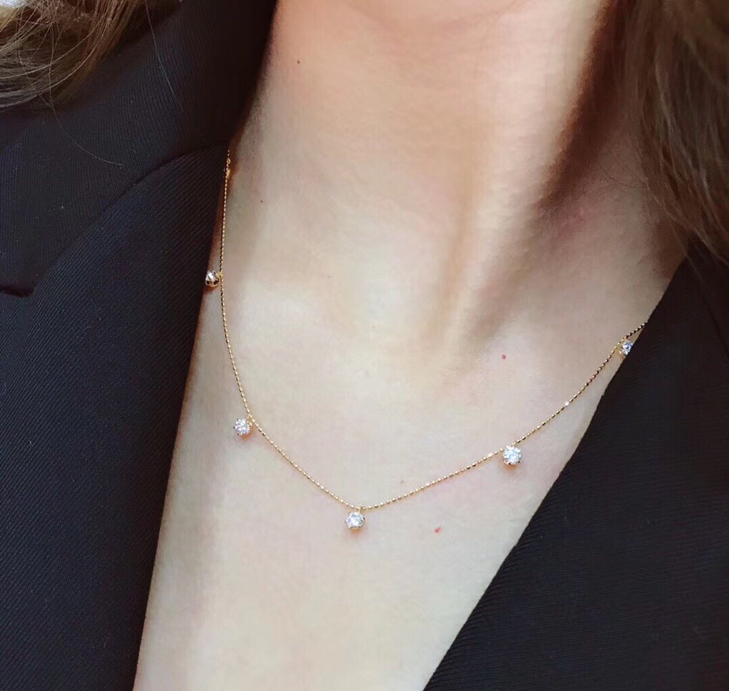 Индивидуальное колье с бриллиантами, памятный подарок, цепочка на ключицу, 18-каратное золото, звездное бриллиантовое колье, женское колье