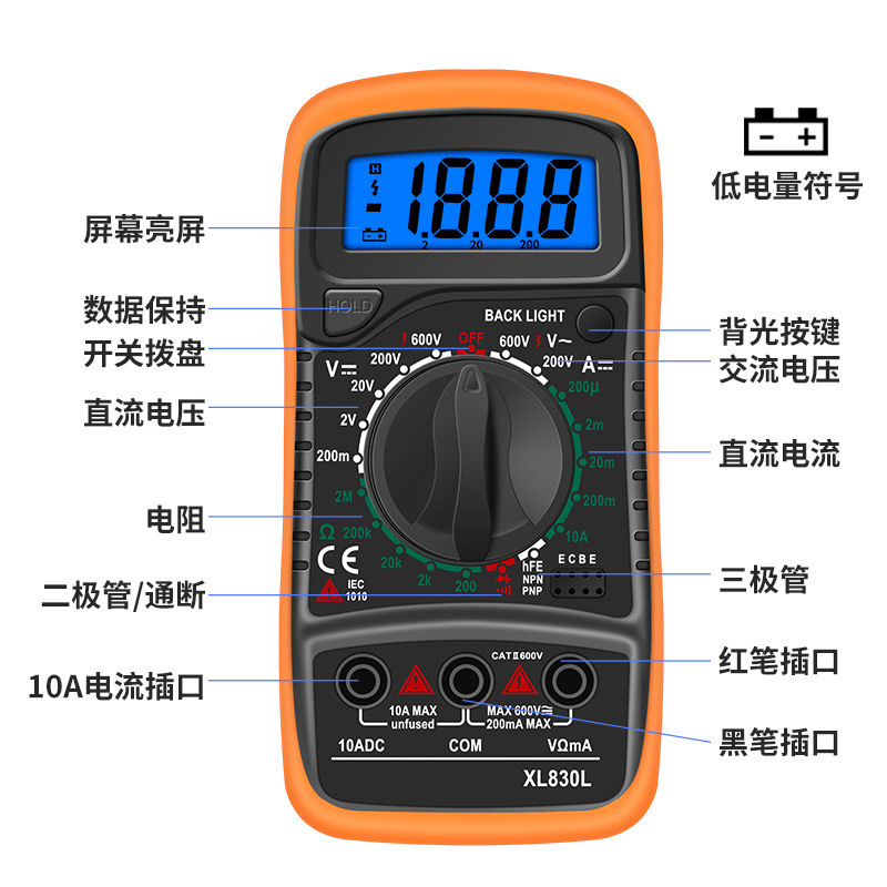 Трансграничный эксклюзивный цифровой мультиметр XL830L Универсальный измеритель ручной мультиметр Цифровой дисплей зуммер метр