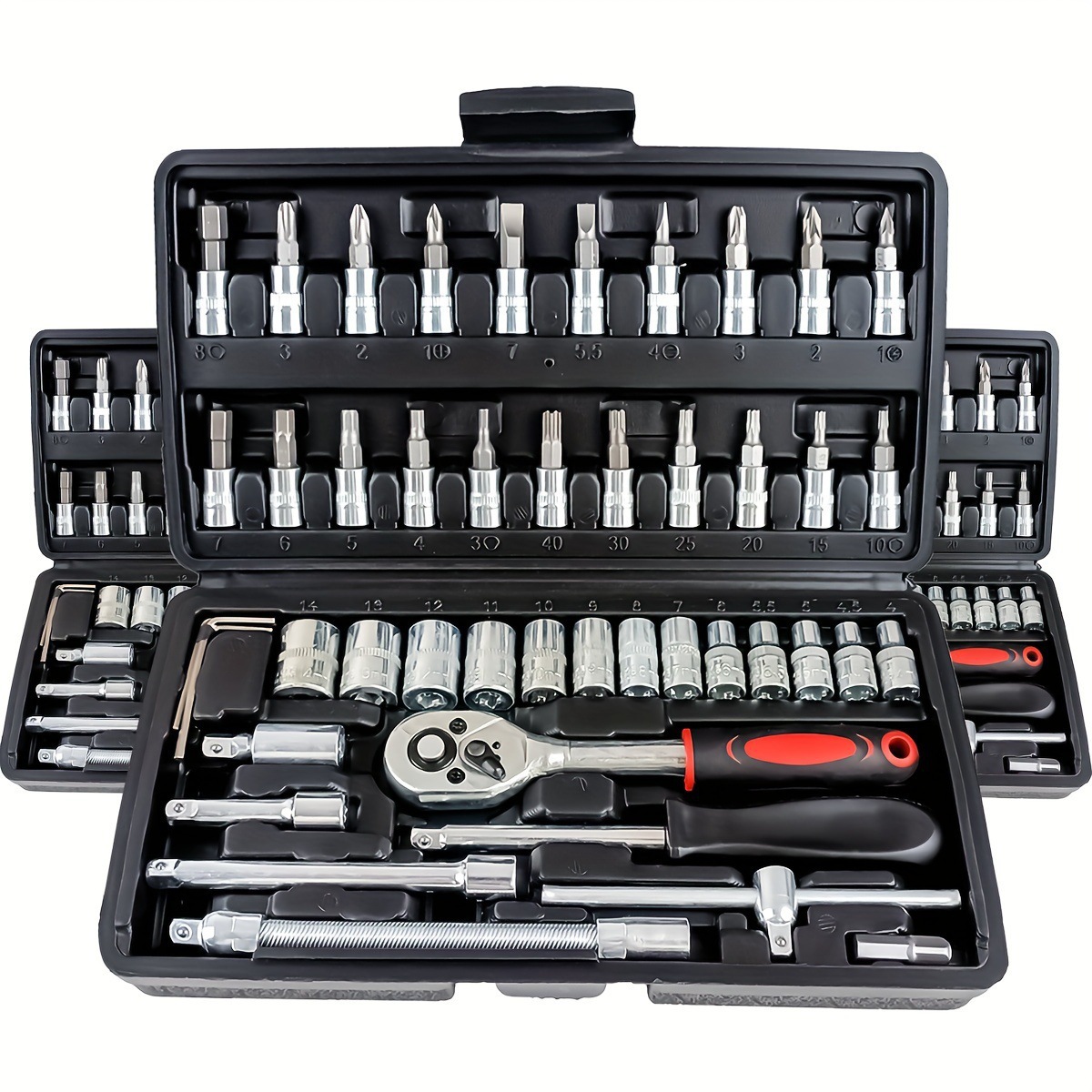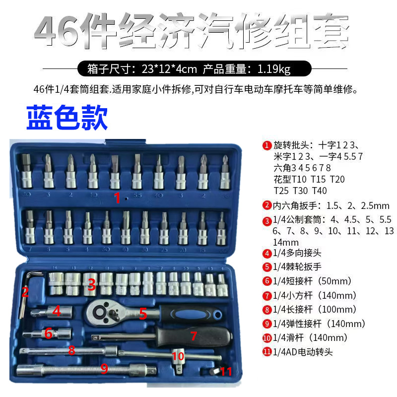 Комбинированный инструмент из 46 предметов, торцевой ключ для ремонта автомобилей, маленький гаечный ключ с трещоткой, 1/4 костюм, Ремонтный комплект для машины