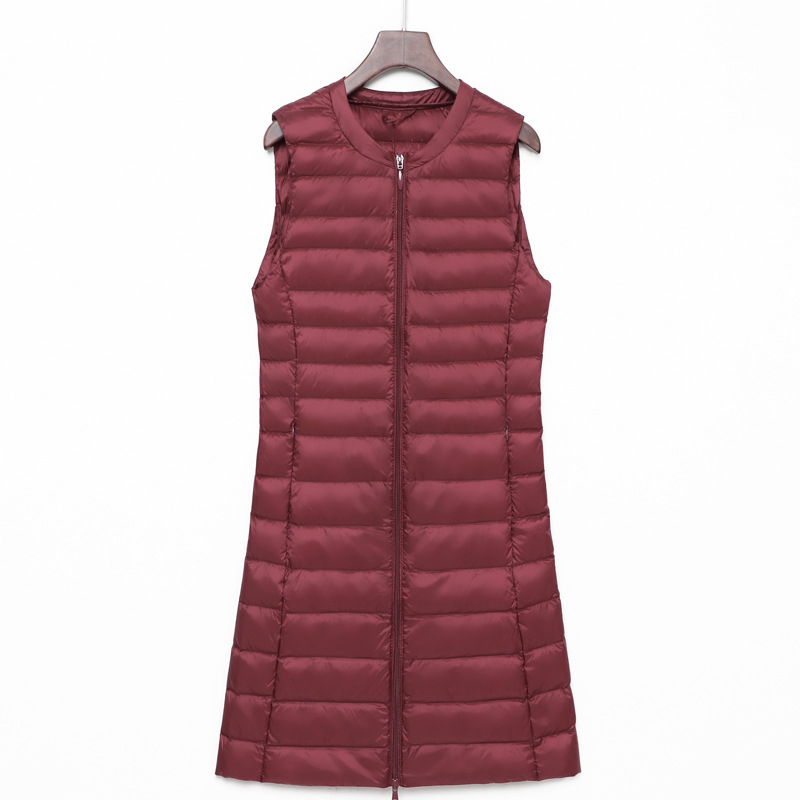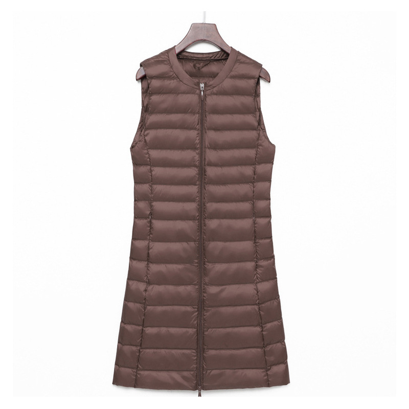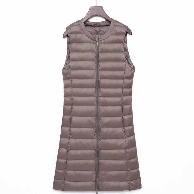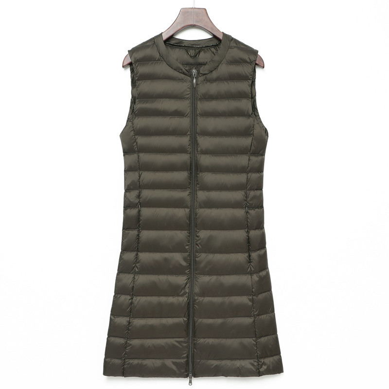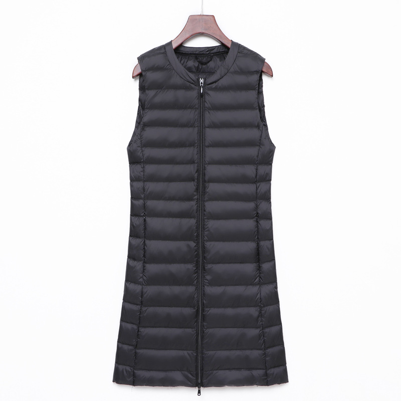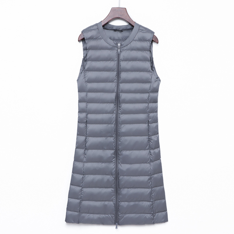 Легкий пуховик, женский осенне-зимний новый жилет без воротника с круглым вырезом, жилет большого размера, белый утиный пух средней длины, Модный корейский стиль