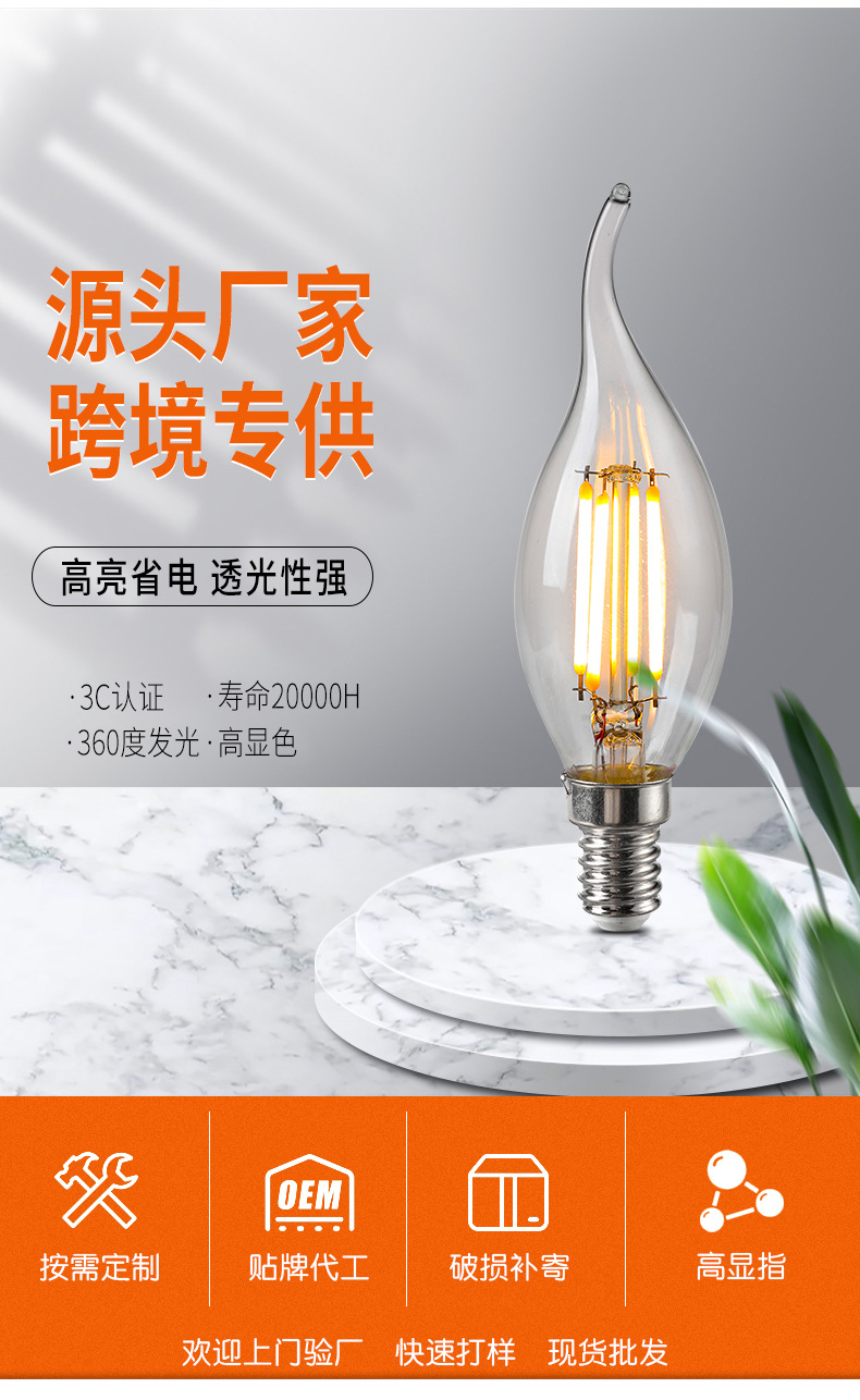 Лампа накаливания старинная светодиодная нить ретро e14 маленький винтовой наконечник пузырь теплый желтый свет Эдисон свеча лампа бесплатная доставка